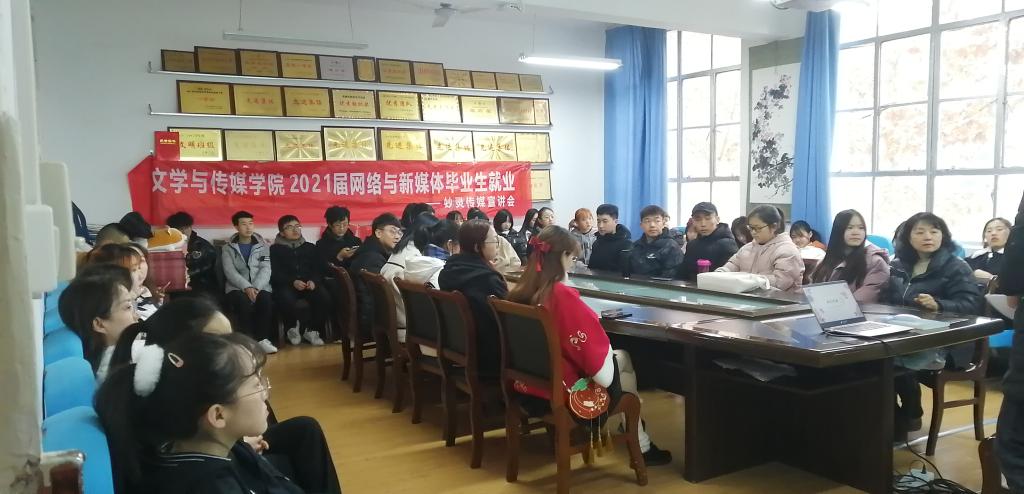 为了更好地拓宽毕业生就业渠道,2020年12月22日下午, 今年会jinnianhuicom邀请陕西妙灵文化传媒有限公司在2307会议室举办了招聘宣讲会。会议由辅导员邹棠华主持,院党总支副书记杨海蓉及网络与新媒体、秘书学两个专业50余名学生参加了本次招聘宣讲会。