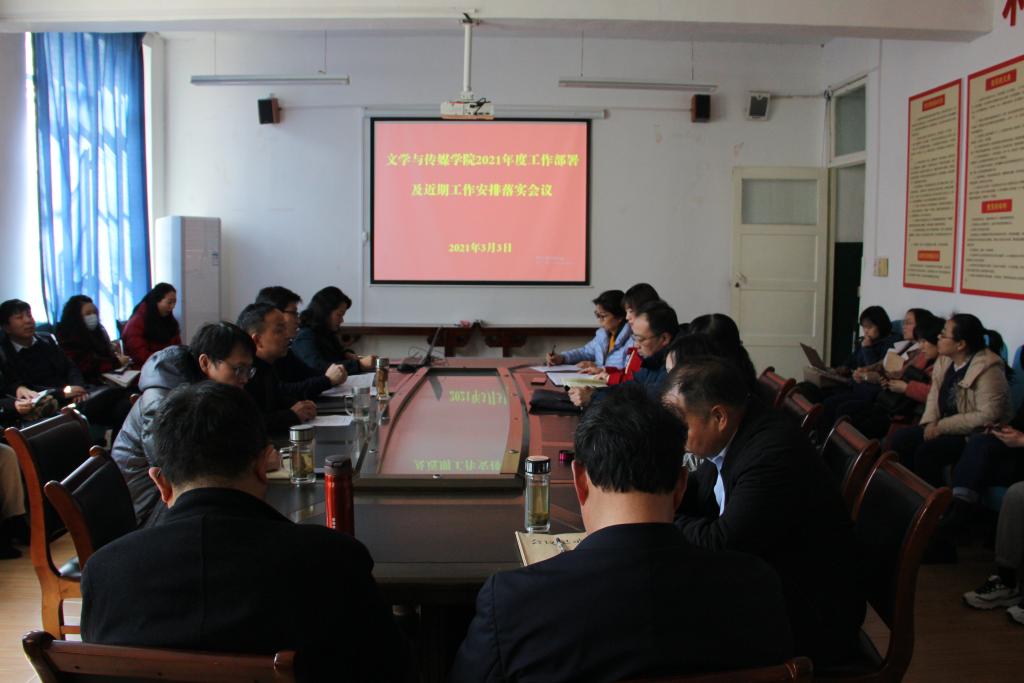 杨运庚从教学、科研、人才队伍建设、党建学生工作等方面对2020年度文传学院的工作进行了总结回顾,并就2021年度文传学院在教学、科研、人才队伍建设、安全稳定等方面的宏观重点工作、具体特色亮点工作、近期工作以及工作思路进行了全面梳理和安排布置;党总支书记芦伟对党建工作、学生工作、稳定安全工作等进行了具体的安排部署;副院长朱云对近期需要完成的教学和科研工作作了具体要求;副书记杨海蓉结合学生活动、课堂管理、考研指导等方面作了工作安排。