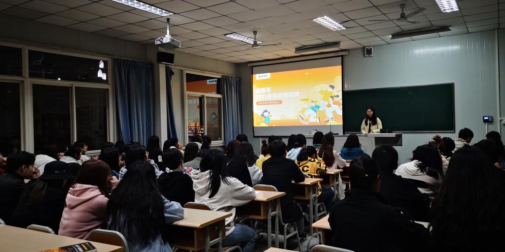 猿辅导和大力教育招聘教师分别介绍了各自公司的工作环境、招聘岗位、薪资待遇、发展空间、企业文化等方面的情况,解答了同学们的提问。招聘会现场交流互动热烈,三十余名学生投了招聘简历,表达了应聘意向。