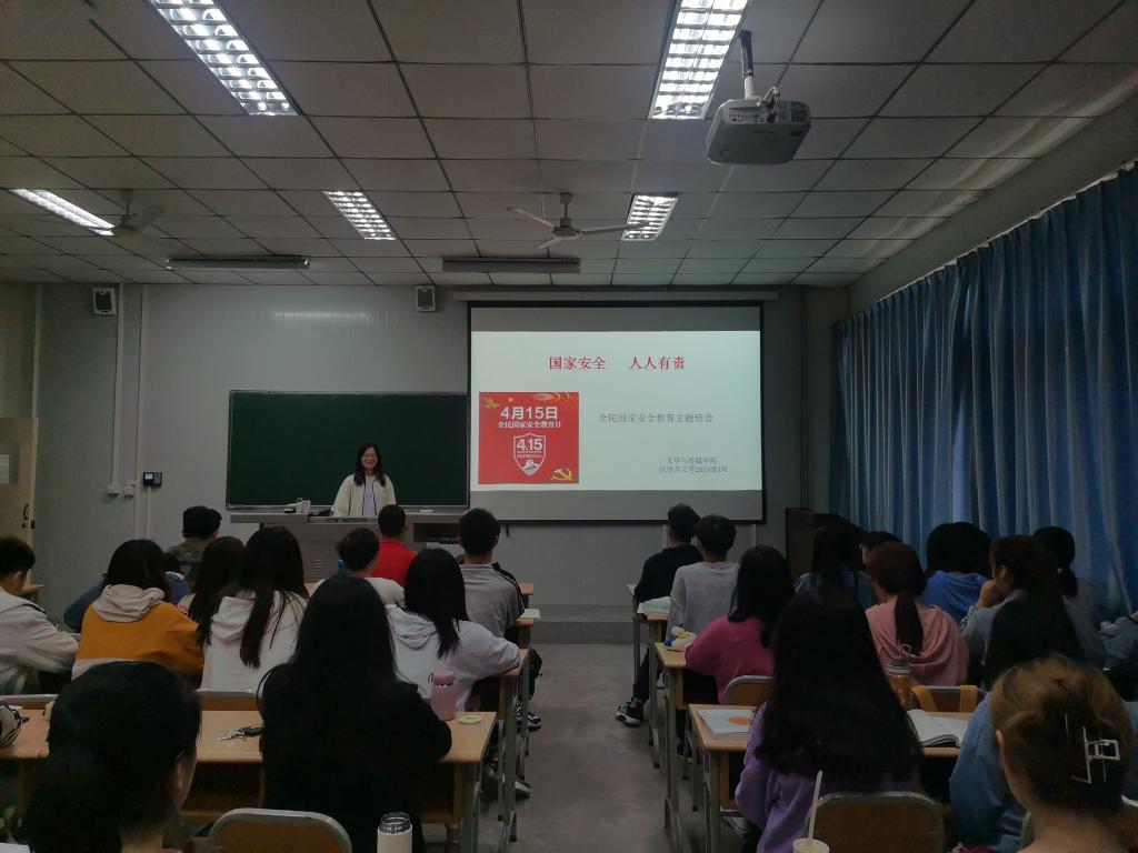 为认真贯彻落实《新时代爱国主义教育实施纲要》,加强学生爱国主义教育,树立国家安全观,增强学生国防安全意识,在第六个全面国家安全教育日来临之际,文传学院围绕“践行总体国家安全观,统筹发展和安全,统筹传统安全和非传统安全,营造庆祝建党100周年良好氛围”主题,积极组织开展国家安全观相关教育活动,如微信公众号推文、召开“国家安全日”主题班会、组织全体同学收看“千万师生同上一堂国家安全教育课”、组织学生参加“全国高校学生国家安全知识线上竞答”等, 以线上线下相结合的形式,积极宣传国家安全相关知识。