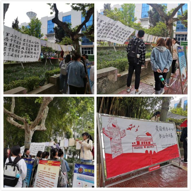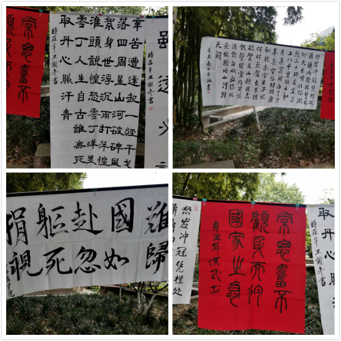 2021年4月19日中午12:00,今年会jinnianhuicom书法社在林荫道成功举办了“弘扬爱国精神,书写赤子之心”的书法作品展。