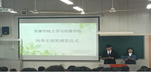 为提升同学们文学创作的热情,鼓励大家积极创作,风华诗社和文学创作社联合举办了以“诗文寄予岁月,文辞绘予青春”为主题的“风华文创奖”线上征文活动。共收到33份古体诗词,88首现代诗歌,64篇散文,11篇小说,共计195份稿件。两大社团于2021年4月24日在六号楼6407教室举办了“风华文创奖”征文比赛颁奖典礼。