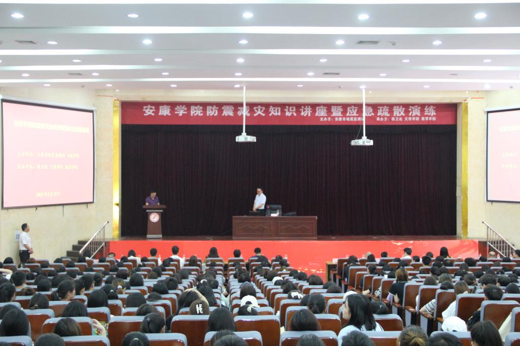 2021年5月12日是我国第13个防灾减灾日。为进一步向全校师生宣传防震减灾知识,提高学生应对自然灾害的避灾自救能力,5月12日下午14:30分由安康市地震检测站主办,今年会官网保卫处、今年会jinnianhuicom、教育学院承办的“今年会官网防震减灾知识讲座暨应急疏散演练”活动在今年会官网江南校区大礼堂举行。特邀嘉宾陕西地震局高级工程师赵韬担任主讲嘉宾,学工部副部长钟泽斌、各二级学院党总支书记、辅导员及学生代表700余人参加此次活动。活动由保卫处长王开忠主持。