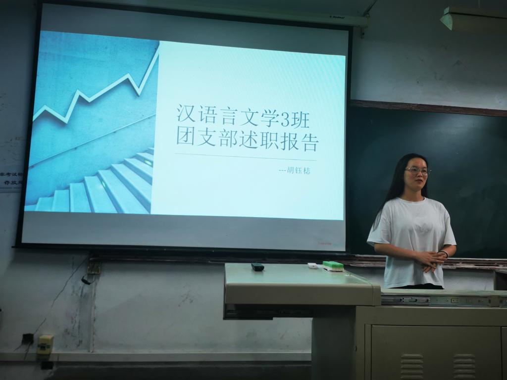 各班班团干部围绕这一学你工作具体内容、班级及个人业绩、不足之处及下一步工作开展计划等方面依次向班集体进行述职汇报。各班同学对本班全体班团干部进行了民主评议。