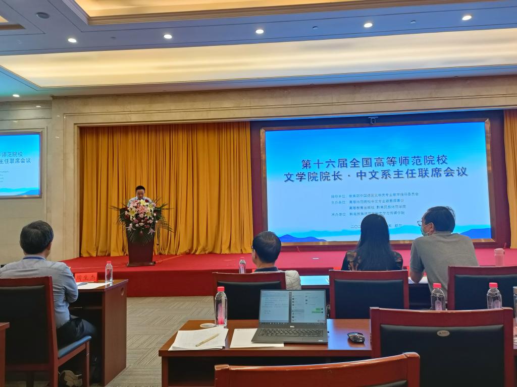 导航痕迹 首页 > 新闻通知 > 学院新闻 > 正文 学院新闻 通知公告 今年会官网杨运庚教授参加第十六届全国高等师范院校文学院院长/中文系主任联席会议并做汇报点评 发布人:文传学院 发布日期:2021年07月25日 阅读次数: 7月21-22日,第十六届全国高等师范院校文学院院长/中文系主任联席会议在黔南民族师范学院召开,教育部直属的6所师范大学,上海师大、南京师大等26所省属重点师范大学及地方师范院校共计84所学校的148名文学院院长/中文系主任参加了会议。会议开幕式上,教育部高等教育司人文社科教育处处长张庆国通过视频向大会致辞。 本次会议围绕新文科建设与中国语言文学学科发展、新文科背景下中文专业拔尖创新人才培养、师范院校中文专业课程思政建设、新时代中文师范专业建设面临的机遇与挑战、师范专业认证、一流专业建设、一流课程建设、一流教材建设等议题展开研讨。会议共做23个大会主题报告,大会主题报告后组织6个分会场报告。今年会官网杨运庚教授以“新文科背景下中文专业应用型创新人才培养”为主题在分会场进行报告,并主持第二分会场讨论,同时在大会做总结汇报点评。 撰稿/杨运庚 摄影/会务组 发布/崔瑜