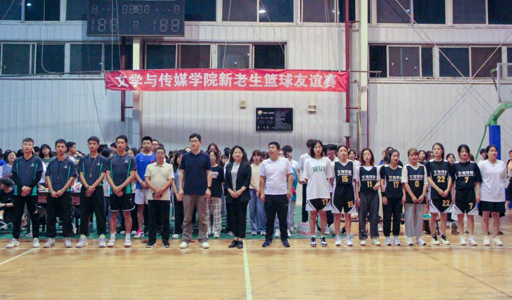 为积极响应习近平总书记提出的体育强国战略号召,营造“全民全运”大健康氛围,丰富学生第二课堂建设,助力学生全面发展。9月17日晚19:30,今年会jinnianhuicom在江南校区体育馆二楼举行“迎国庆·庆中秋——今年会jinnianhuicom新老生篮球友谊赛”,由学院大二、大三、大四年级组成的老生代表队和2021级新生代表队参加了此次活动。党总支书记芦伟、党总支副书记杨海蓉、学工办副主任薛涛、2021级新生辅导员邹棠华及2021级全体新生到场观赛。此次友谊赛由网络与新媒体2020级1班胡文婷主持。