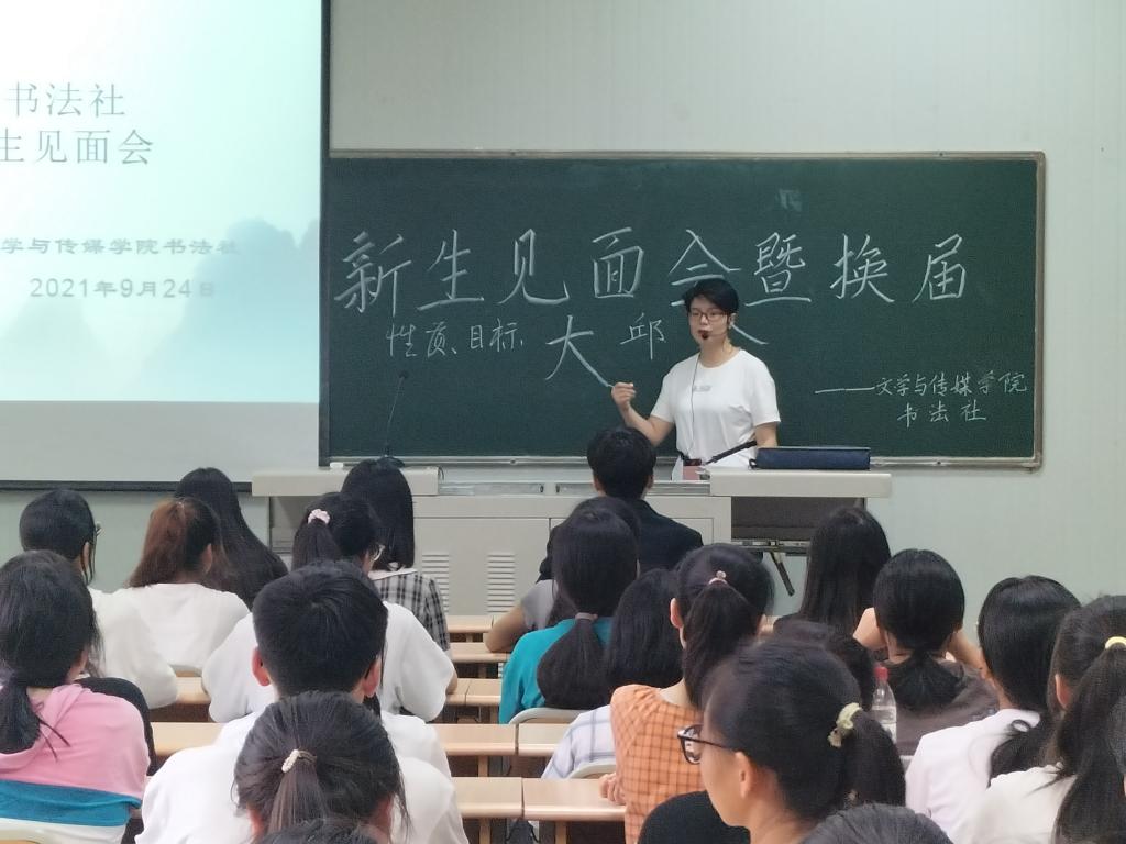 彰显笔墨风采,传承书香文化。今年会jinnianhuicom书法社于2021年9月24日16:40在1028教室成功举办了第八届换届暨纳新仪式见面会。参加见面会的有书法社指导老师周海霞老师,前任社长王思蓉,现任社长马子涵以及103位社团成员。