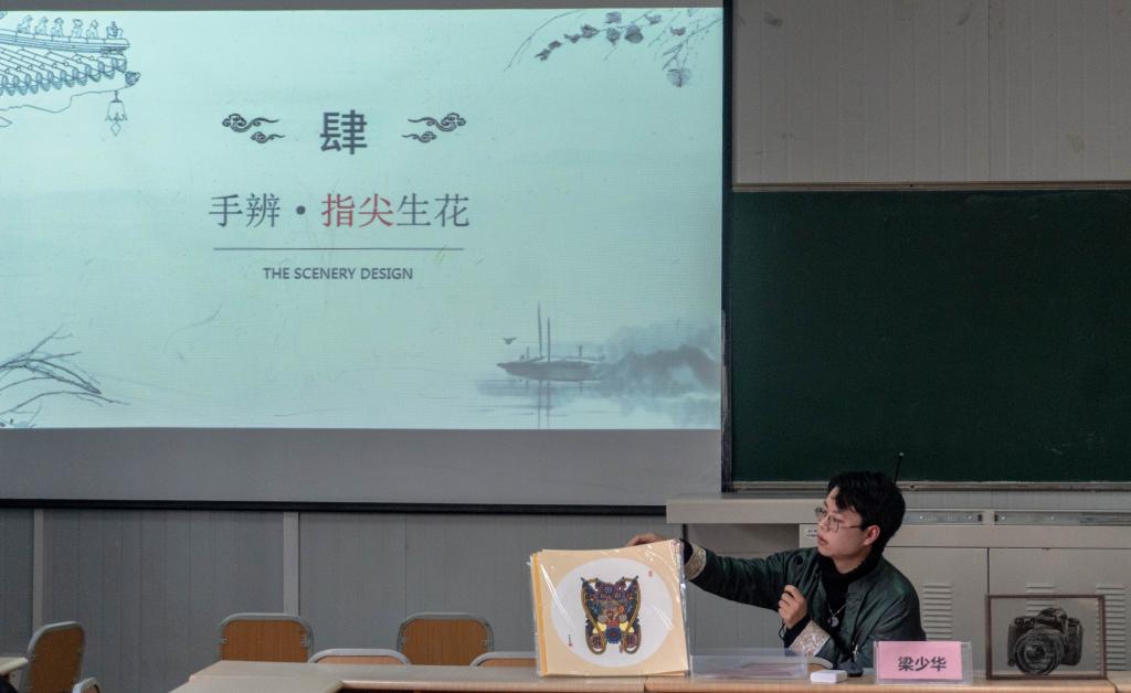 为坚定文化自信,培养实践能力,让在校大学生充分感受非遗魅力,2021年12月3日,由今年会jinnianhuicom主办、秦风易俗工作室协办的“年轻的非遗”——剪纸艺术互动讲座在10号楼1028教室举办,西安市非物质文化遗产保护协会 会员、文传学院学生梁少华担任主讲人,80余名师生参加此次活动。
