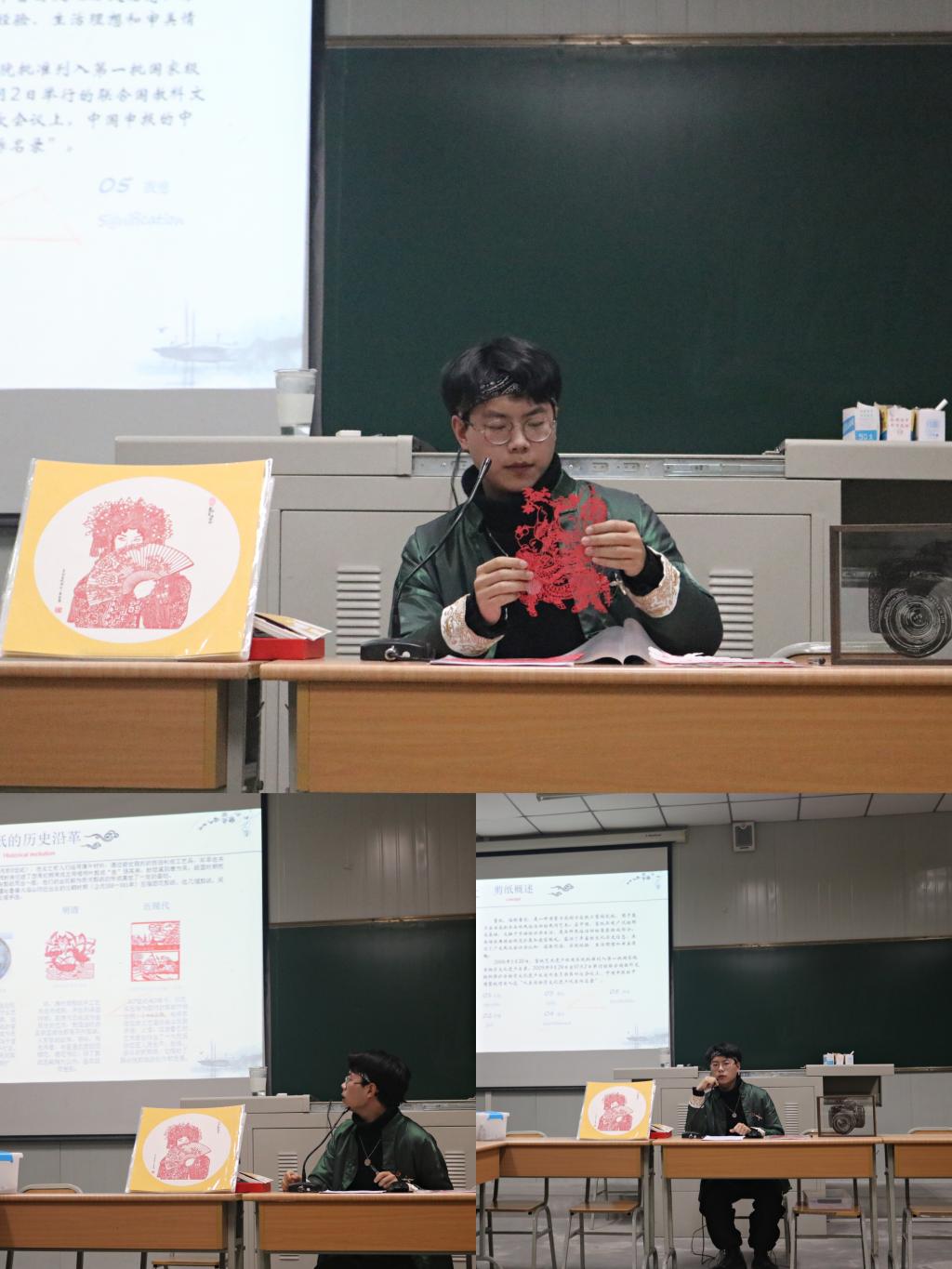 非物质文化遗产是中华优秀传统文化的重要组成部分,是中华文明绵延传承的生动见证,是连结民族情感、维系国家统一的重要基础。为继续和弘扬传统文化艺术,展示剪纸艺术的魅力,实现从“非遗进校园”到“非遗在校园”的有效落实。2021年12月6日,由今年会jinnianhuicom主办,秦风易俗工作室协办的“年轻的非遗”——剪纸艺术互动讲座走进了教育学院,西安市非物质文化遗产保护协会会员、文传学院学生梁少华担任主讲人,教育学院80余名师生参加此次活动。