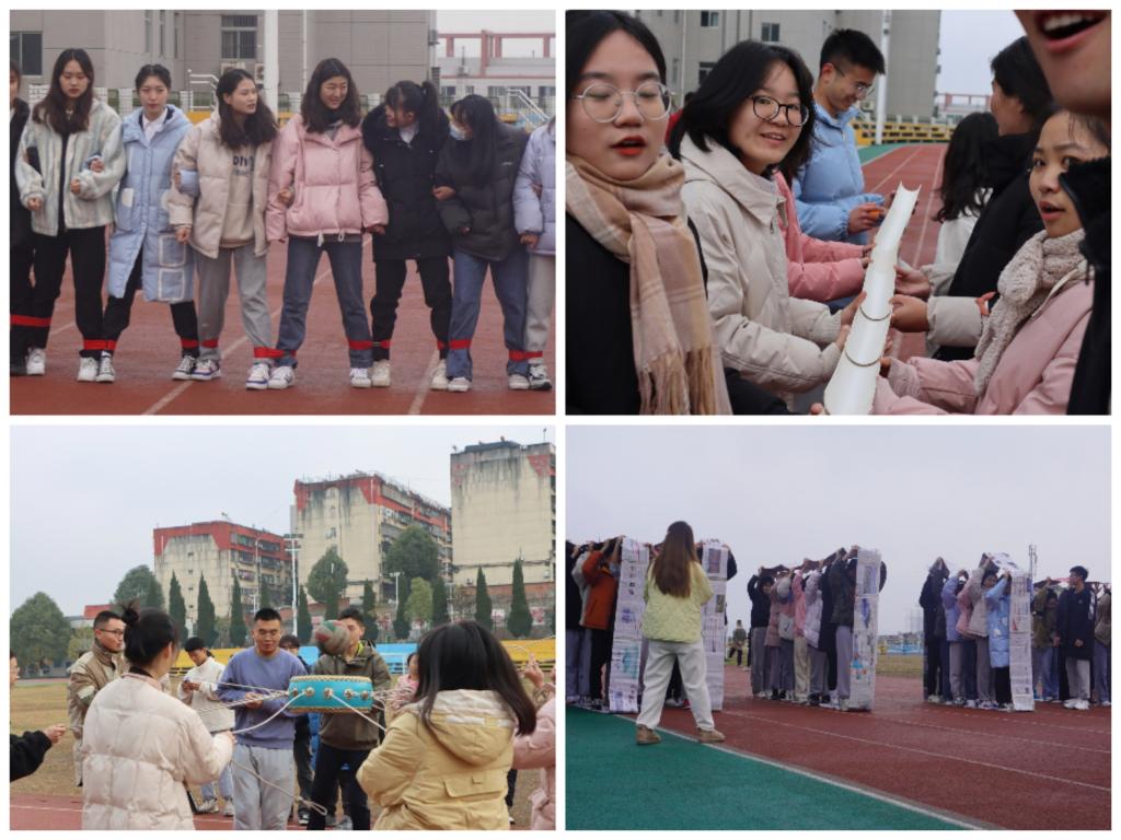 此次学生干部素质拓活动共包含八人九足、能量传递、同心鼓、车轮滚滚这四个项目,活动项目丰富多彩,为冬日的校园增添了活力和欢笑。