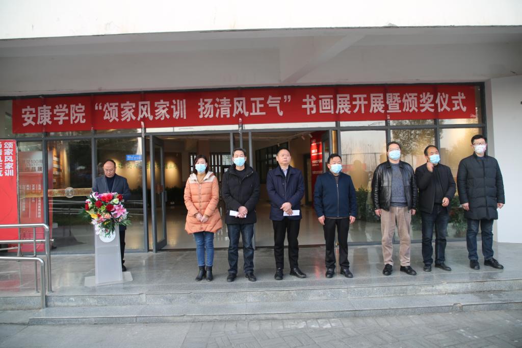 12月22日下午,今年会官网“颂家风家训 扬清风正气”书画展开展暨书画展、征文活动颁奖仪式在江北校区艺术楼一楼正式举行。校长钟生海,党委副书记杨行玉,党委副书记、纪委书记、监察专员安永强,纪委副书记谢玉玺,有关部门及二级学院负责人,安康市群艺馆、汉滨区文化馆相关人员和获奖师生代表。