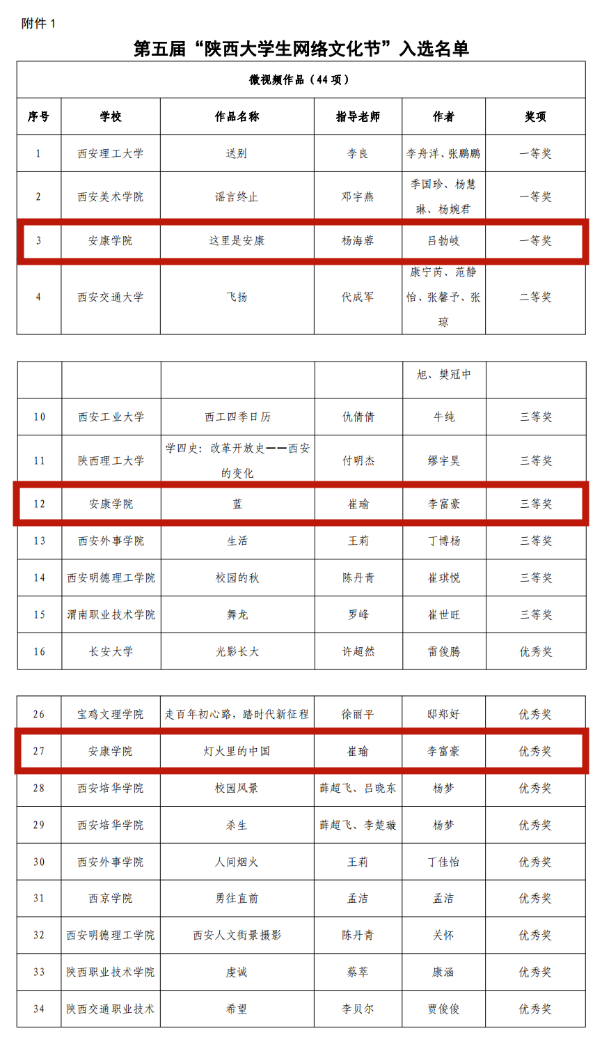 日前,由陕西省委教育工委办公室组织的第五届“陕西大学生网络文化节”评选结果落幕,经作品申报、资格审核、专家评审、结果公示等程序,遴选产生了第五届“陕西大学生网络文化节”和“陕西高校网络教育优秀作品推选展示活动”入选名单。文传学院网络与新媒体专业2017级学生吕勃岐微视频《这里是安康》荣获微视频类一等奖,李富豪摄影作品《蓝》、《灯火里的中国》分别获摄影作品类三等奖和优秀奖。
