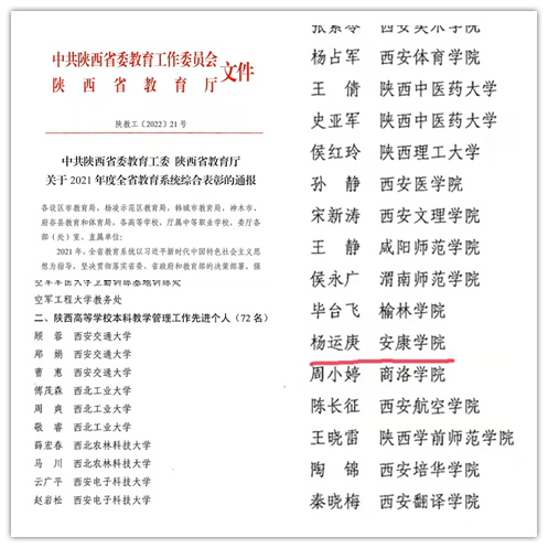导航痕迹 首页 > 新闻通知 > 学院新闻 > 正文 学院新闻 通知公告 杨运庚荣获全省教育系统“2021年陕西高等学校本科教学管理工作先进个人”荣誉称号 发布人:文传学院 发布日期:2022年03月16日 阅读次数: 窗体顶端 近日,中共陕西省委教育工委陕西省教育厅印发《关于2021年度全省教育系统综合表彰的通报》,文传学院院长杨运庚荣获“2021年陕西高等学校本科教学管理工作先进个人”荣誉称号。 此项荣誉的取得,得益于文传学院全体教职工的积极参与和大力支持。文传学院将以此次表彰为契机,继续加强本科教学管理,为学校学科建设、人才培养、科学研究等持续提供成果。 窗体底端 撰稿/发布/崔瑜 审核/杨运庚