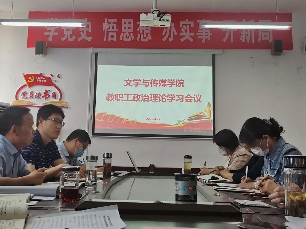 为扎实贯彻落实学校党委2022年全面从严治党会议精神,4月27日下午,文传学院在2307召开学院全面从严治党暨全体教职工政治理论学习会议,会议由学院党总支书记芦伟主持。