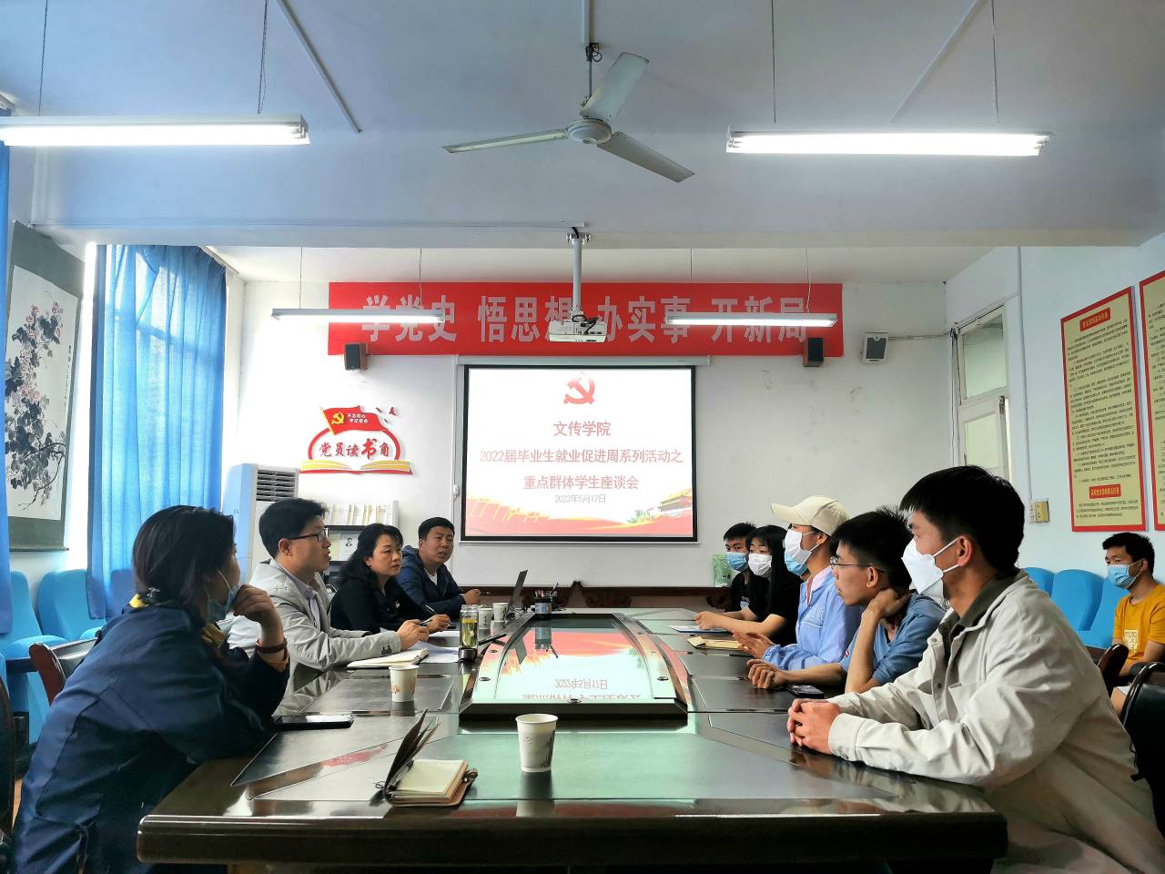 为认真贯彻落实中省 “稳就业”“保就业”决策部署,抓住当前毕业生求职关键期,扎实做好重点群体学生就业帮扶工作,根据学校及学院就业促进月工作安排,5月17日下午,文传学院组织召开了2022届重点群体毕业生就业座谈会。文传学院党总支书记芦伟、党总支副书记杨海蓉,毕业班辅导员艾全霞、彭潇、薛涛及20余名重点群体学生代表参加了座谈会。会议由薛涛主持。