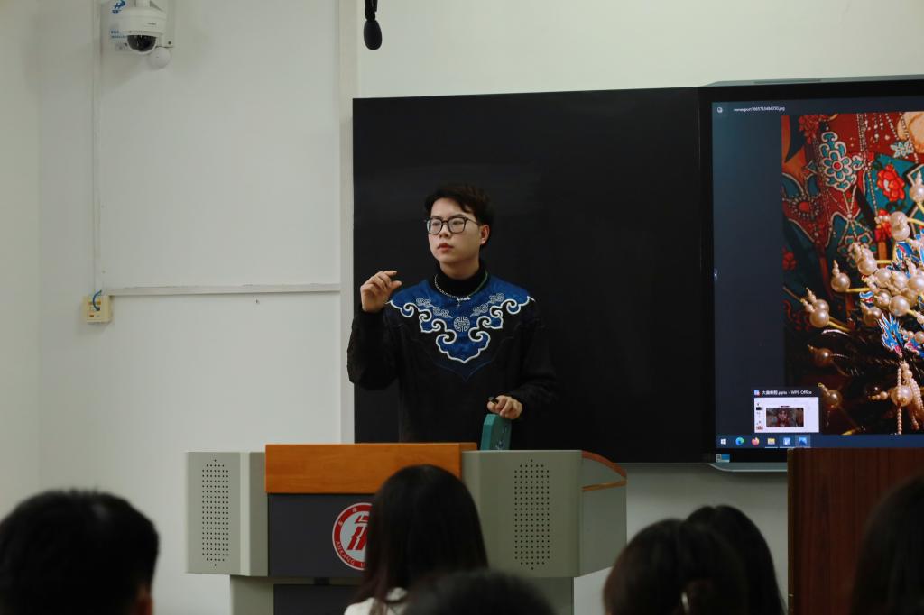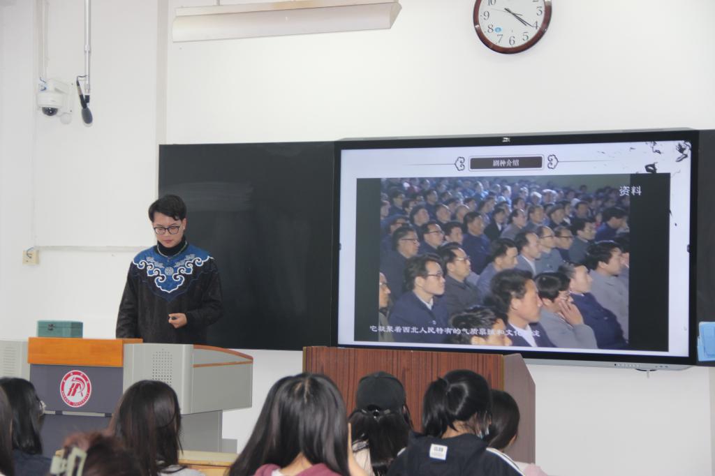 为进一步学习领会党的二十大精神,增强新生对对传统文化的认知,树立文化自信,今年会jinnianhuicom继举办新生剪纸文化互动讲座后,11月8日下午为新生举办了第二期非遗讲座——走进秦腔,由西安市非物质文化遗产保护协会会员、文传学院学生梁少华主讲。