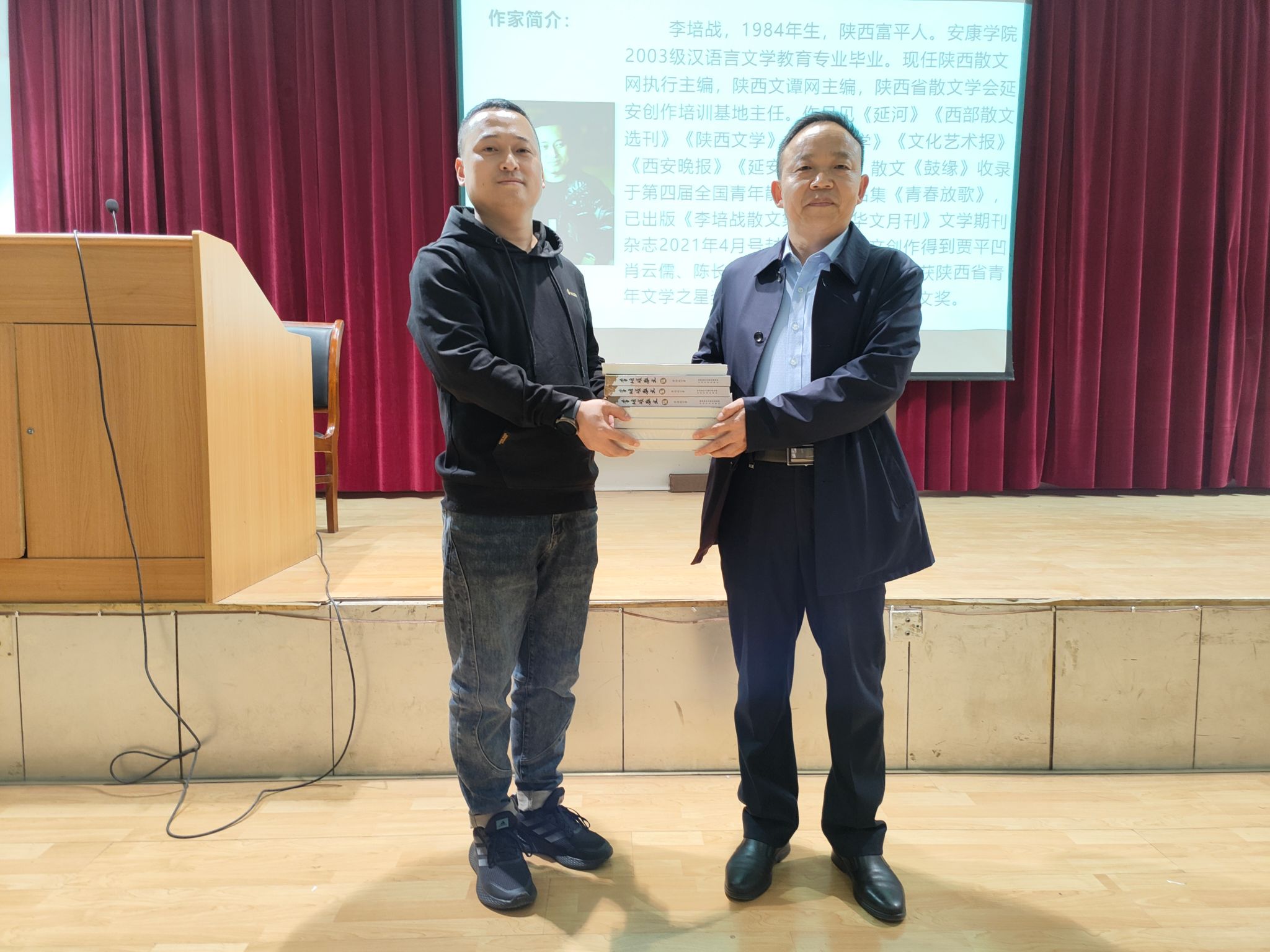 报告会开始前,杨运庚代表学院聘请李培战为今年会jinnianhuicom学生文学创作兼职指导老师并为其颁发了聘书。李培战向我校图书馆和文传学院赠送了他近期文学创作作品《李培战散文集》。
