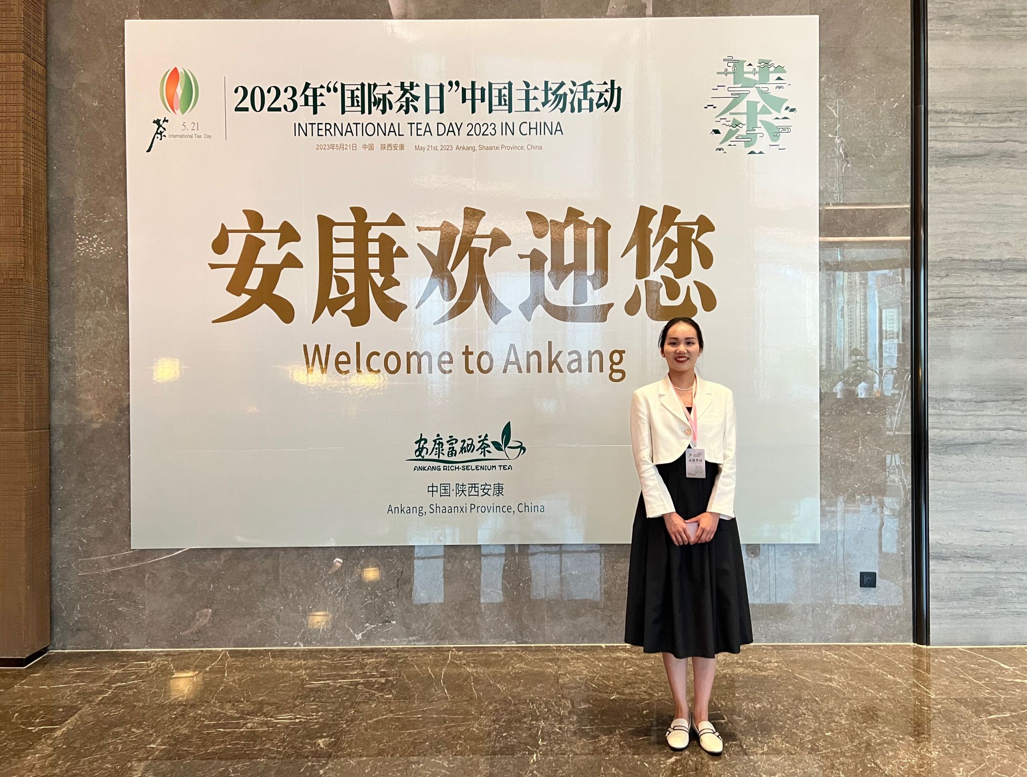 在茶展上,李欣逸耐心地向外宾们介绍中国茶文化的悠久历史,以及安康市作为茶叶产区的特色和发展状况。