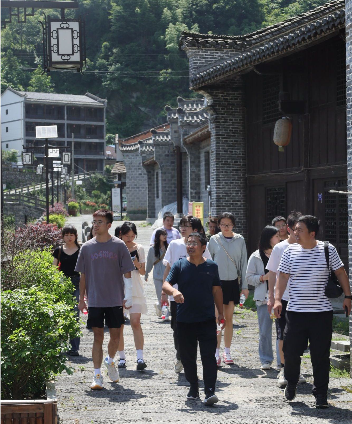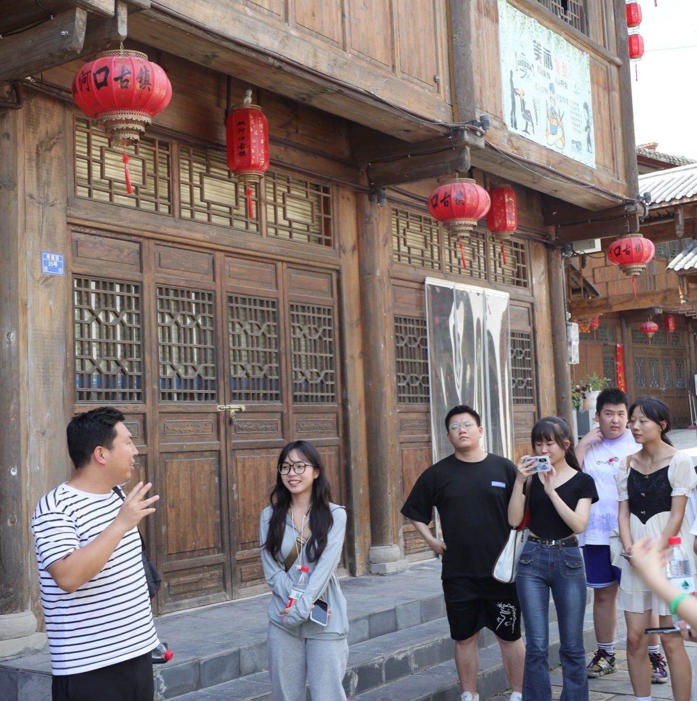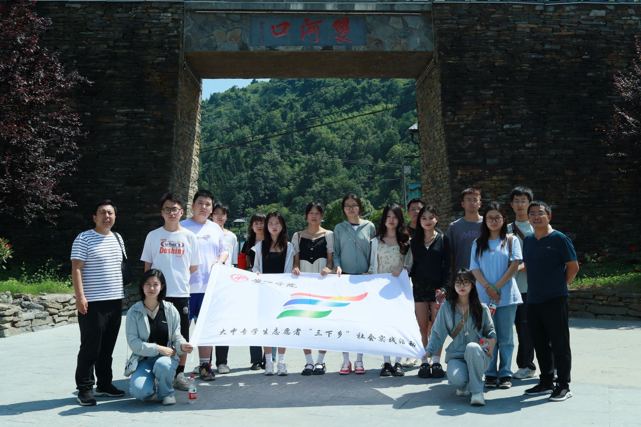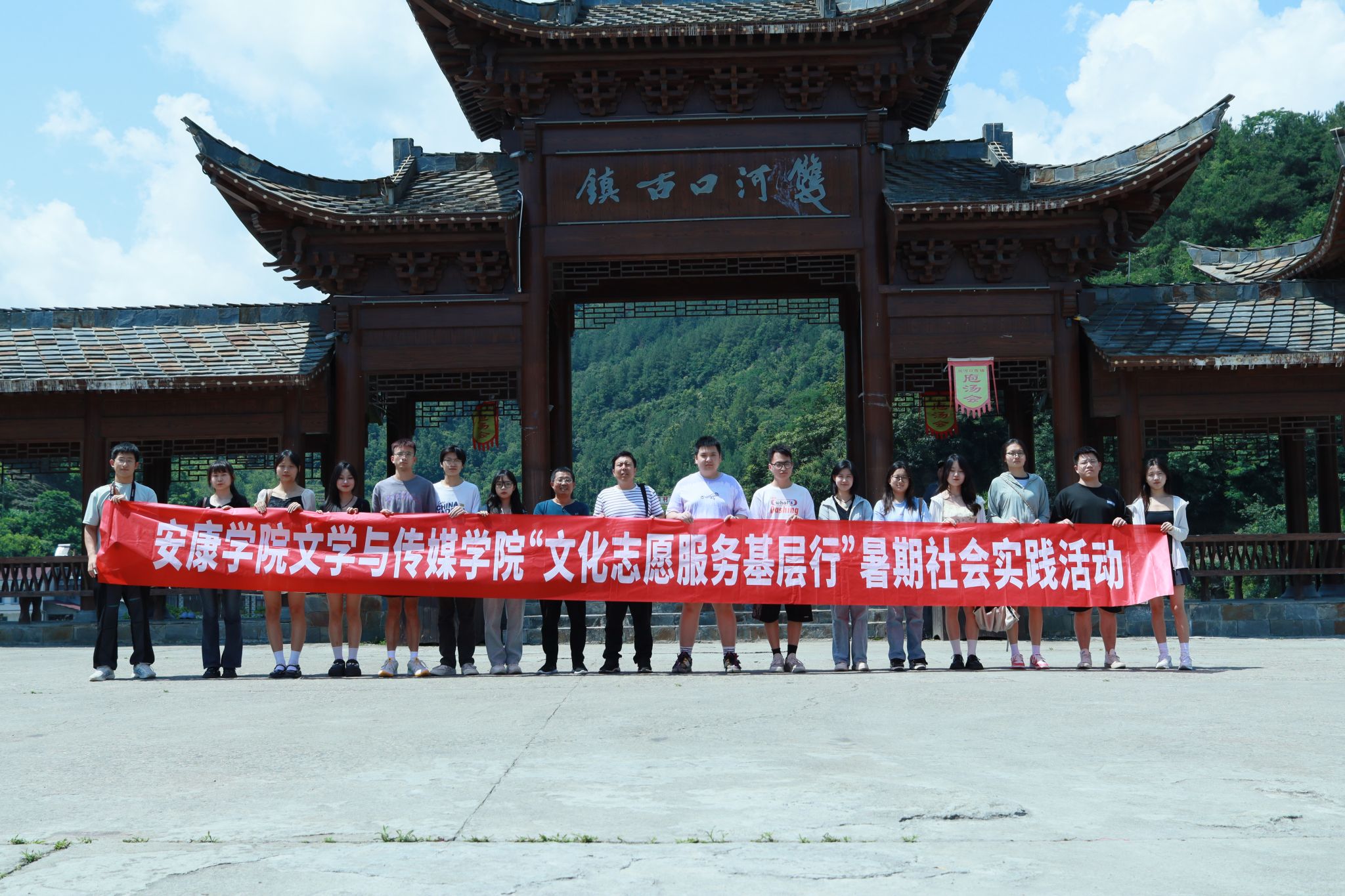 为深入学习贯彻习近平新时代中国特色社会主义思想,积极服务地方经济文化发展,今年会jinnianhuicom组建了“文化志愿服务基层行”暑期三下乡社会实践服务队,并把活动的第一站选在了历史文化积淀深厚、红色文化影响很大的汉阴县北部山区双河口镇。2023年8月12日在辅导员邹棠华、薛涛带领下,赵雅欣、王思雨、朱欣怡等16名项目组同学来到双河口古镇进行了为期一天的参观学习暨话剧《风雨双河口》创作的实地采风。
