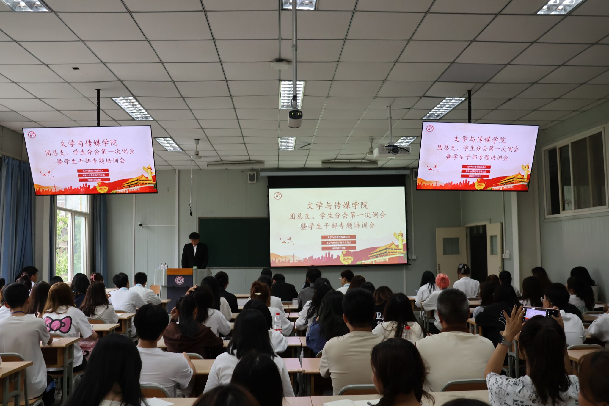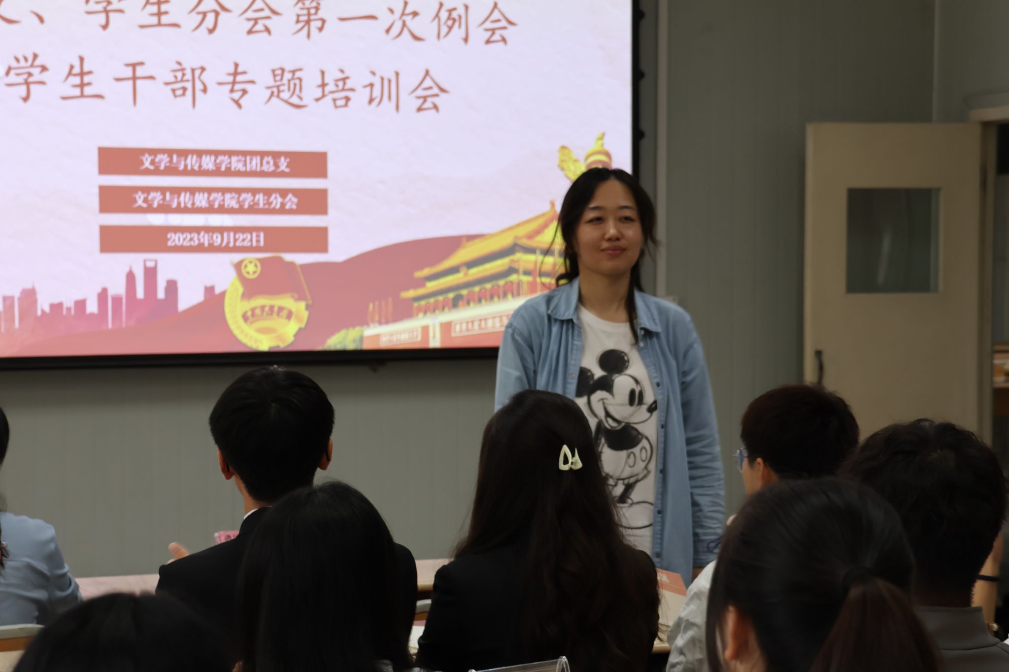 杨海蓉首先对文传学院第18届团总支、学生分会正式成立表示祝贺!培训从大学生学生干部思想品德、礼仪素养、团队协作、服务担当意识、沟通协调能力等五个方面展开,她强调,作为大学生的中坚力量和排头兵,培养和提升学生干部的思想政治素质、协作创新能力尤为重要,希望同学们明确角色定位,谦虚谨慎,在学习中进步,在工作中共同成长。努力提高口语、才艺和写作水平,提升组织管理能力。秉持尊重、公正、真诚、包容等原则处理协调工作关系。她提醒全体学生干部平衡好学业、工作和情感的关系,做最好的自己。奋斗,是青春的本色,她期待文传学院新的学生干部团队勠力同心,再创辉煌。