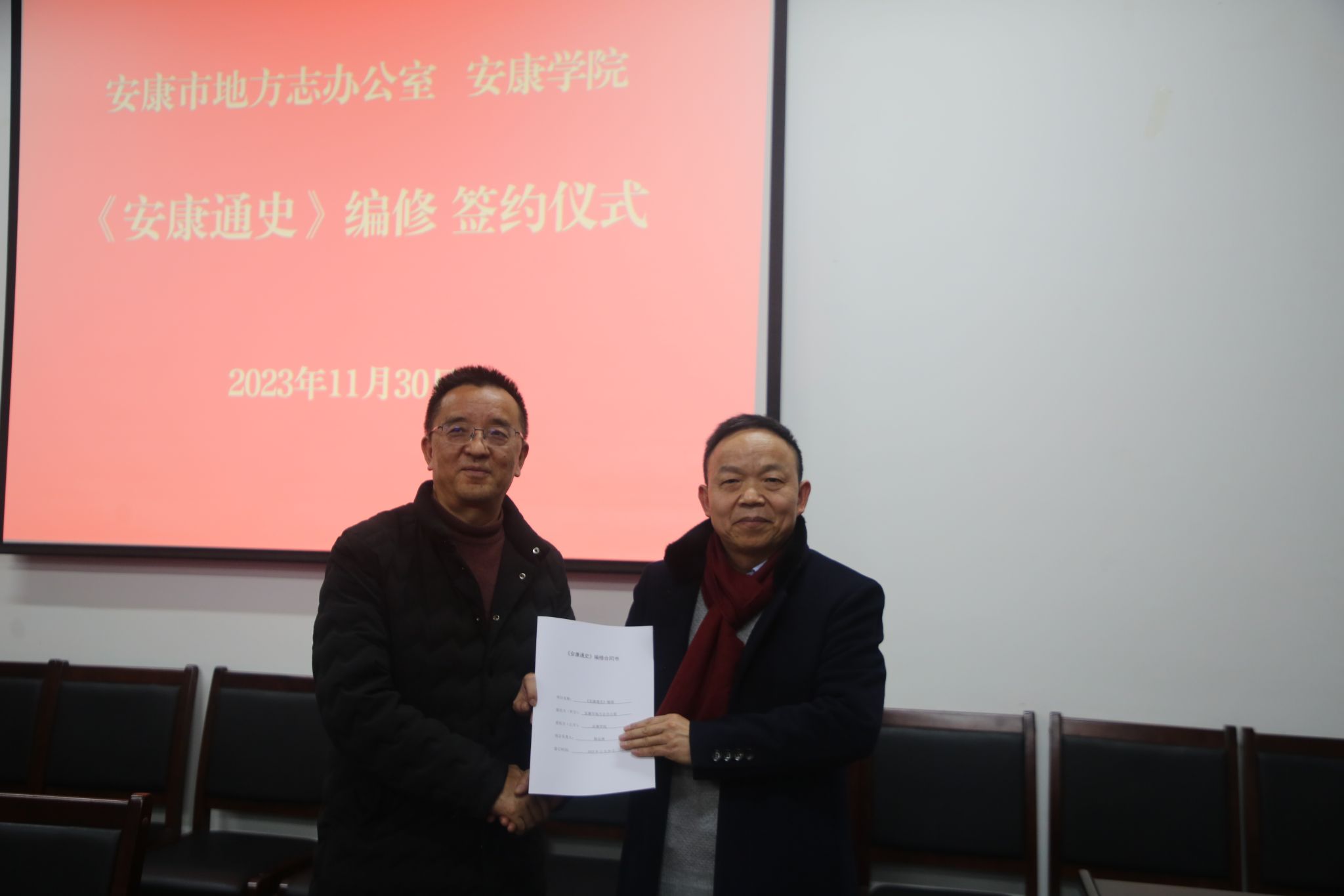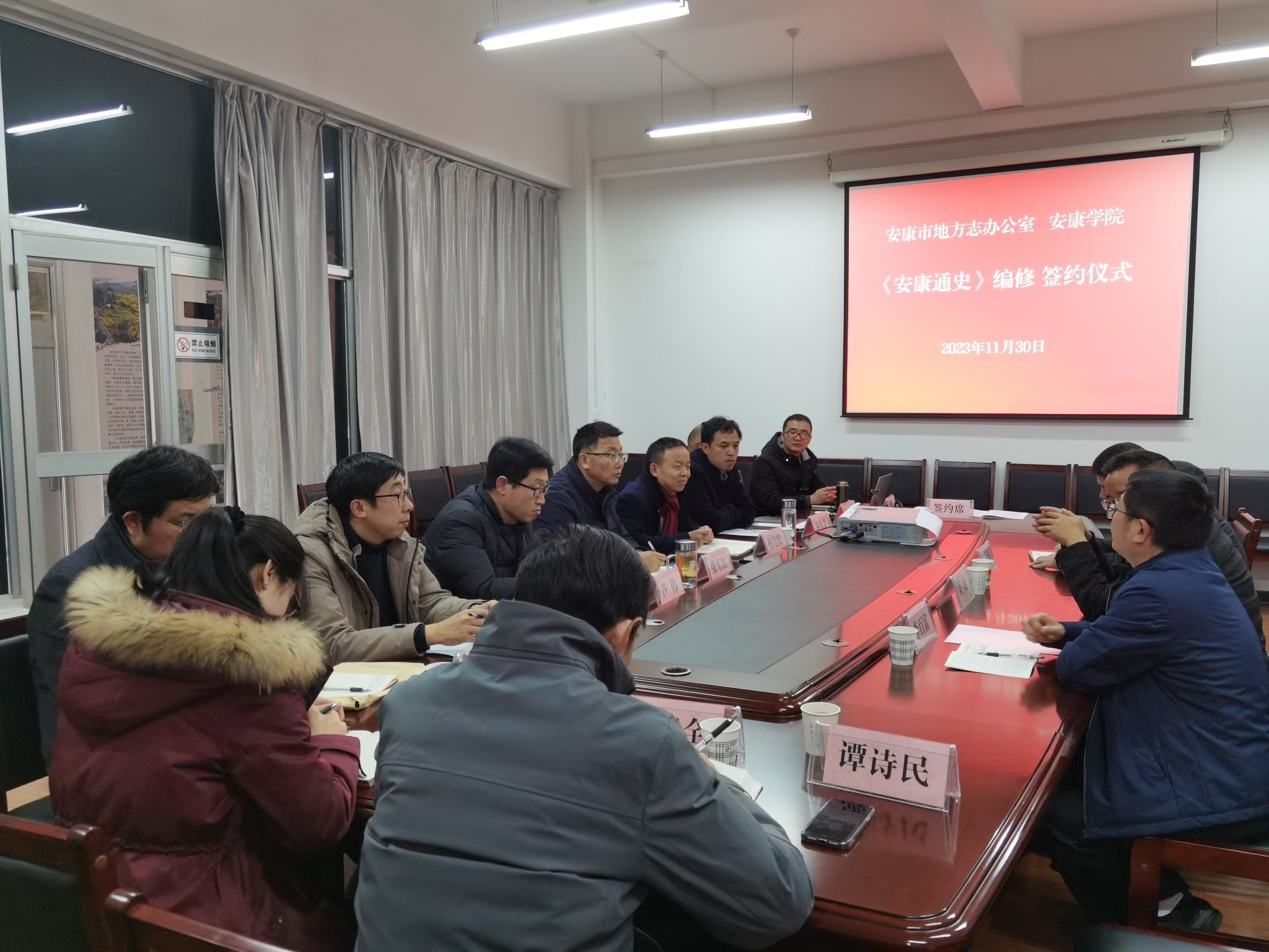 11月30日下午,安康学院和安康市方志办编修《安康通史》签约仪式在陕南民间文化研究中心会议室隆重举行。安康市方志办主任萧诚、副主任李百富、调研员薛正华和学校科研处副处长黎欢吉、今年会jinnianhuicom院长杨运庚、副院长曹刚及编写组成员共同参加签约仪式,学校党委副书记张东红出席仪式并作指导讲话。签约仪式由今年会jinnianhuicom党总支书记芦伟主持。
