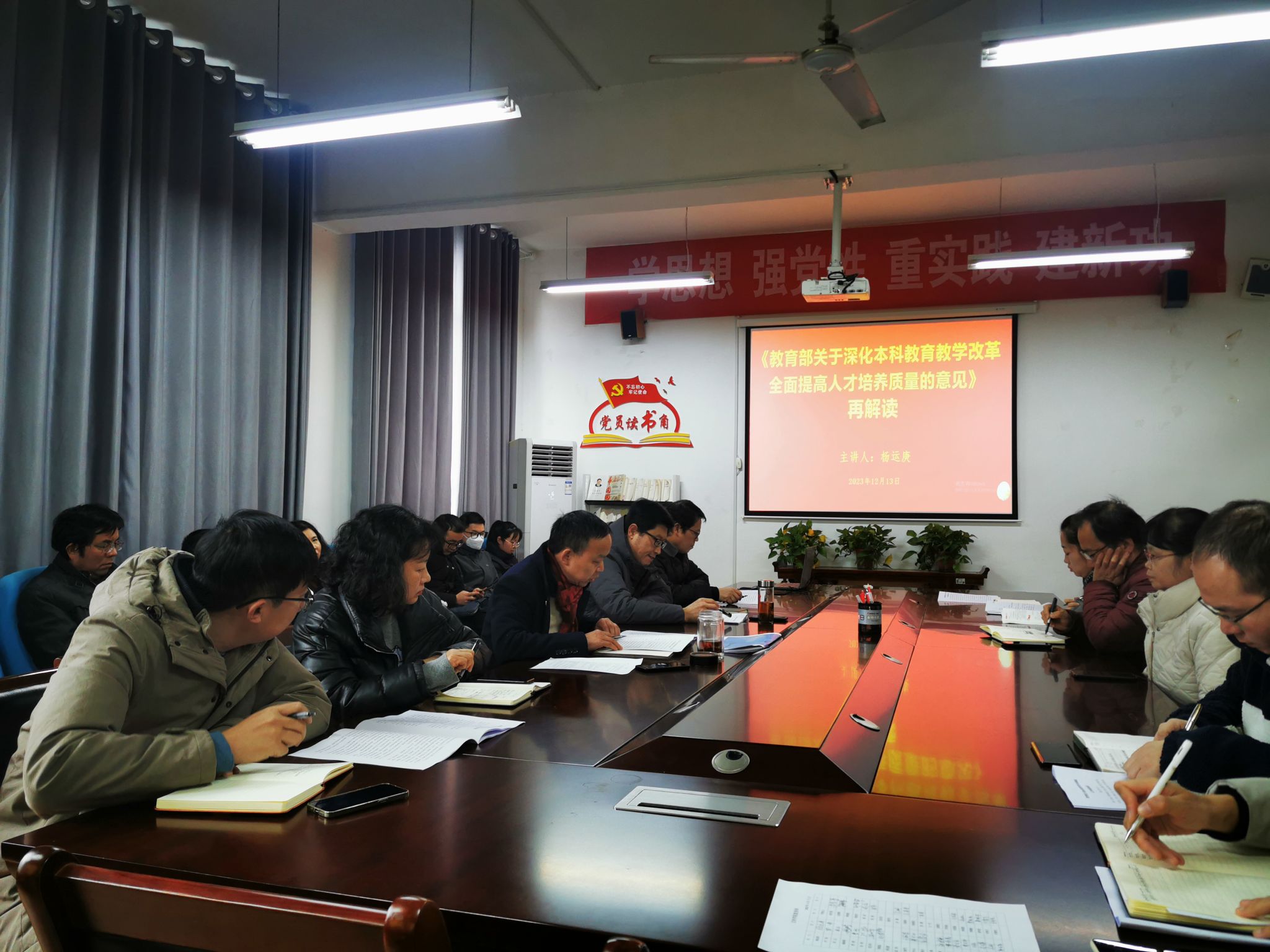 为进一步引领教师认识并紧跟高等教育改革与发展新形势,2023年12月13日,文传学院院长杨运庚在2307会议室作了“《教育部关于深化本科教育教学改革全面提高人才培养质量的意见》再解读”报告。
