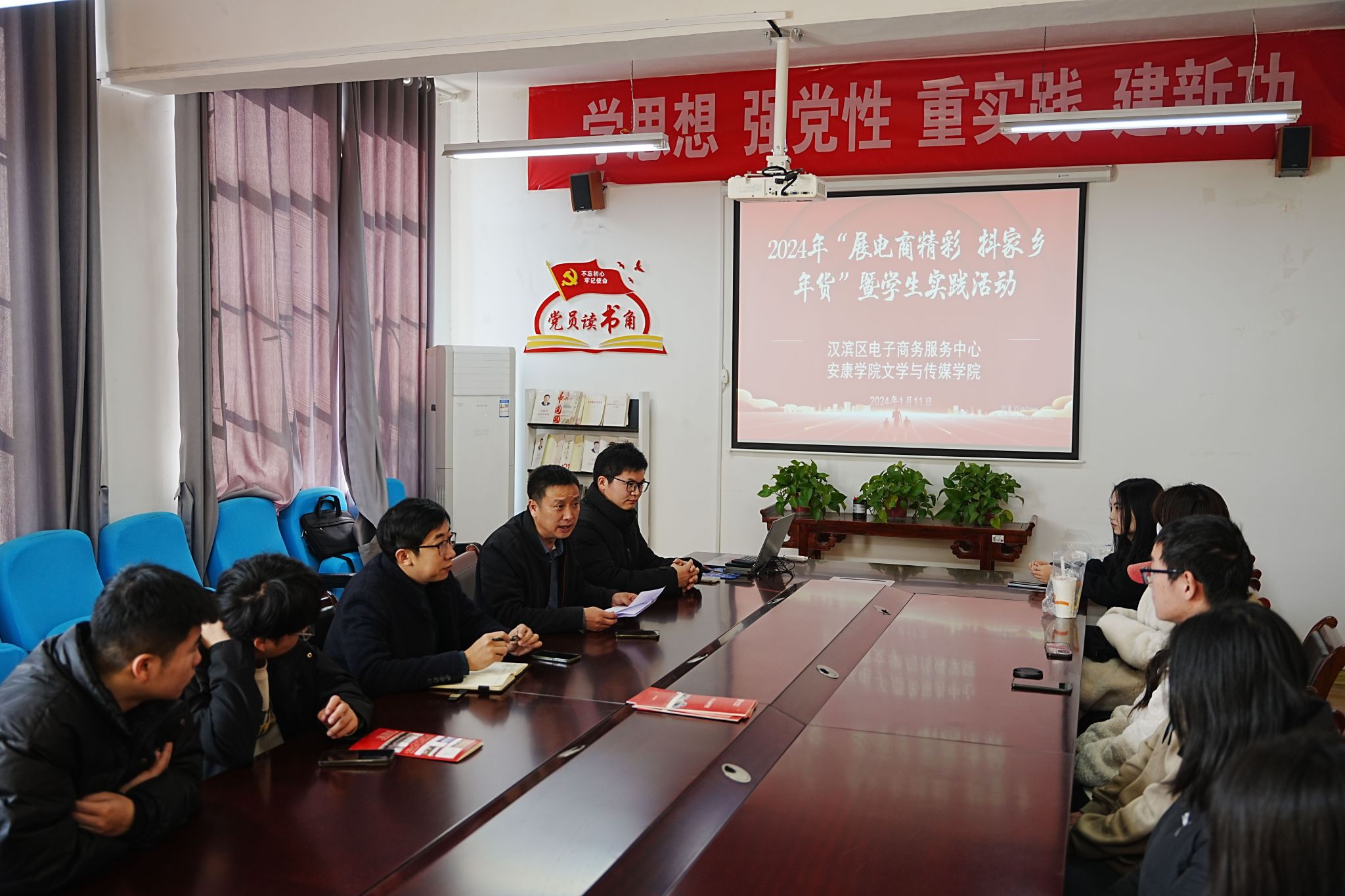 为加强今年会官网网络与新媒体专业学生实训实践,提高学生专业技能的运用能力,强化服务地方的办学宗旨。2024年1月11日中午,今年会jinnianhuicom2307会议室开展了由汉滨区电子商务服务中心与今年会jinnianhuicom等单位联合举办的2024年“展电商精彩,抖家乡年货”暨学生实践活动启动会,本次会议由今年会jinnianhuicom副院长曹刚主持,安康市电子商务联合会秘书长张铁汉、网络与新媒体专业教师张建涛及网络与新媒体专业2021级学生代表共同出席本次会议。