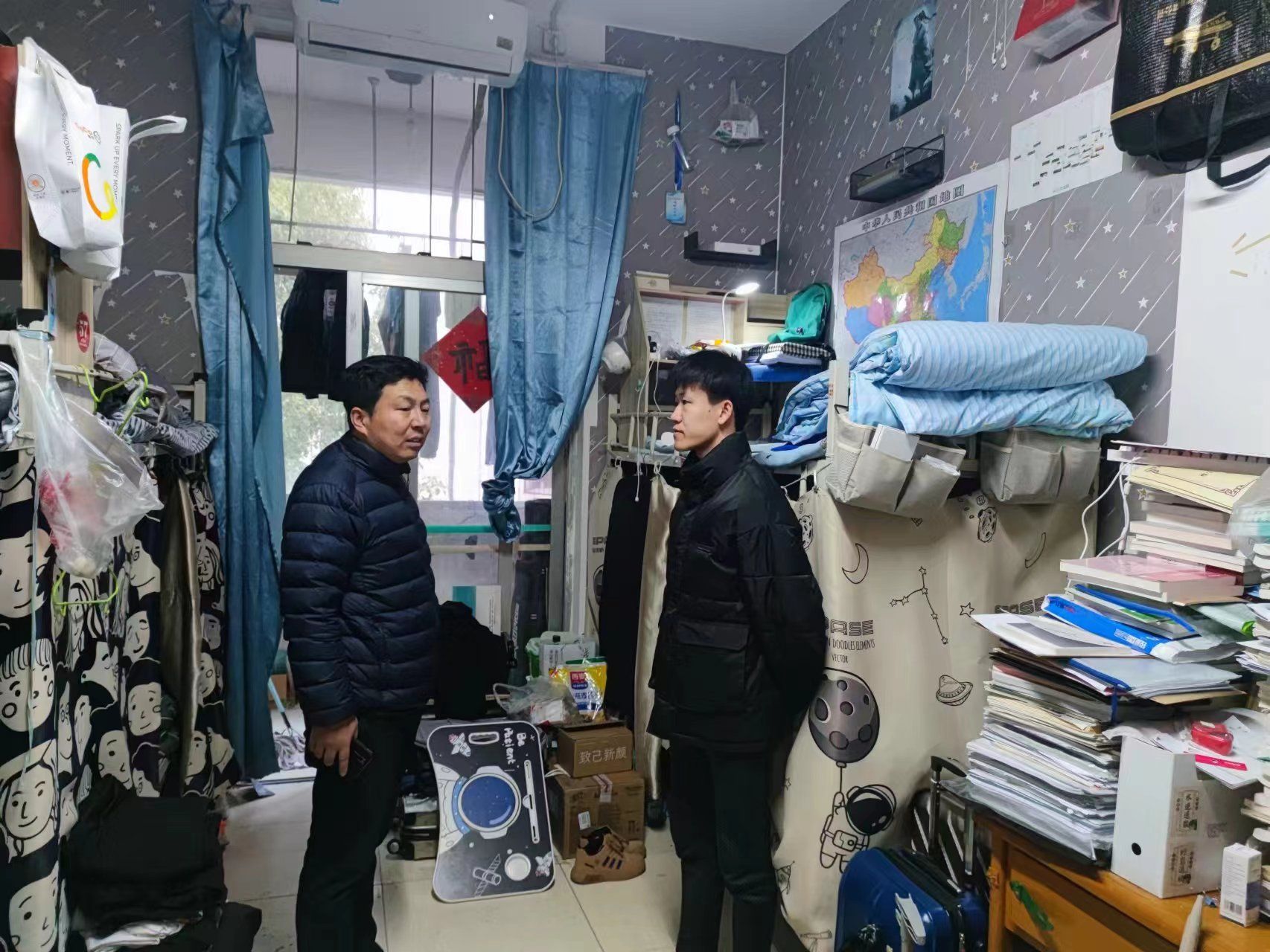 检查工作主要针对宿舍卫生、用电安全及门窗防护等方面进行,对于发现问题的宿舍及时督促整改,并提醒所有学生在离校前收拾好自己的被褥用品,带走贵重物品,清扫宿舍卫生,断电断水,锁好门窗。同时,向准备离校的学生叮嘱交通安全,在回家途中提高警惕,注意人身财产安全。检查过程中,老师们与尚未回家的同学亲切交谈,询问回家时间和乘车情况,考虑到天气原因,嘱咐同学们早做准备,合理安排车程,并注意返程及假期安全。