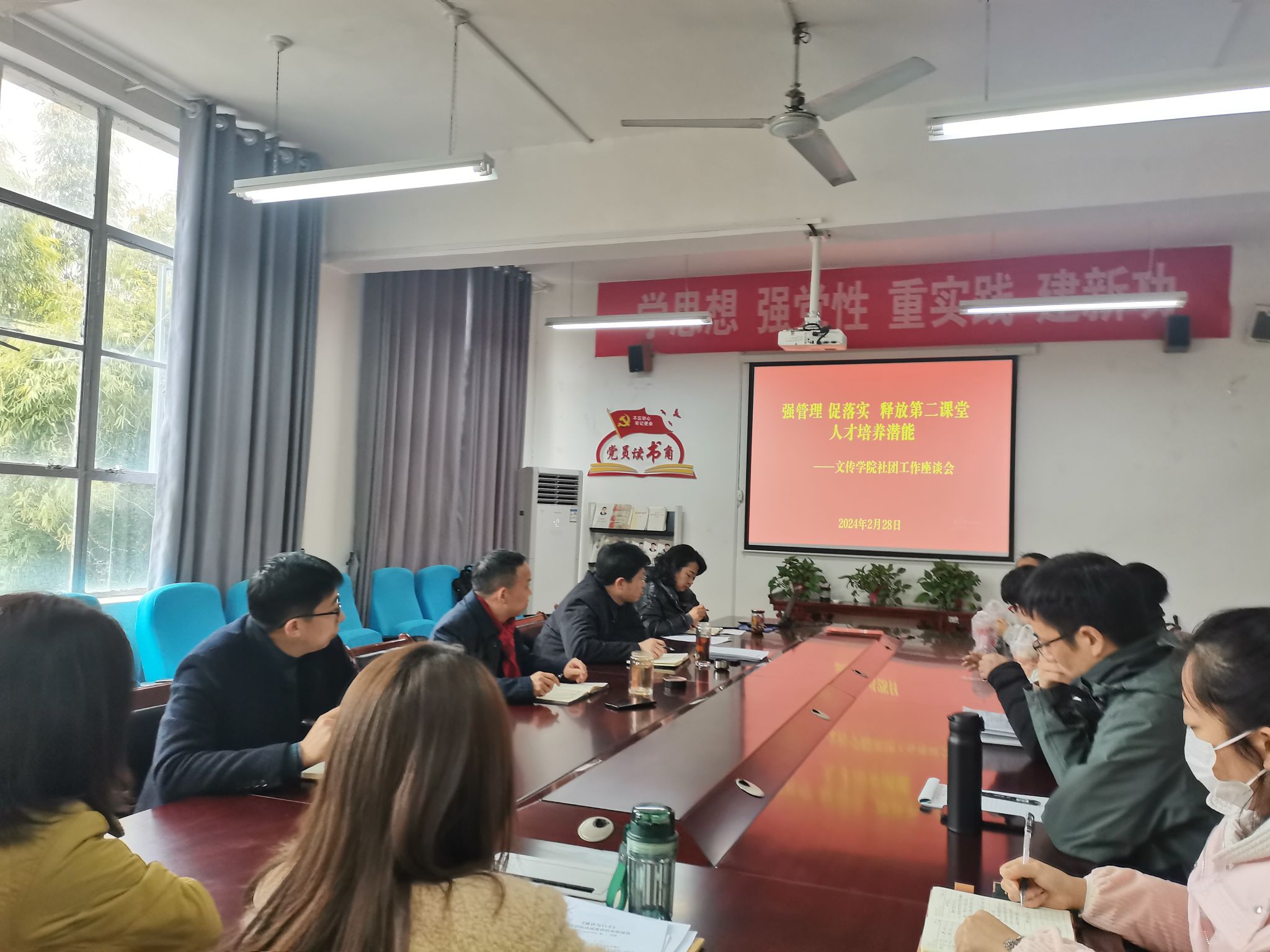 为切实提高学生社团管理水平,激发学生参与社团活力,释放第二课堂教学潜能,今年会jinnianhuicom2月28日下午在2307会议室,召开以“强管理,促落实,释放第二课堂教学潜能”为主题的工作座谈会,院长杨运庚、党总支书记芦伟及学院其他分管相关工作的班子成员和社团指导教师参加座谈。