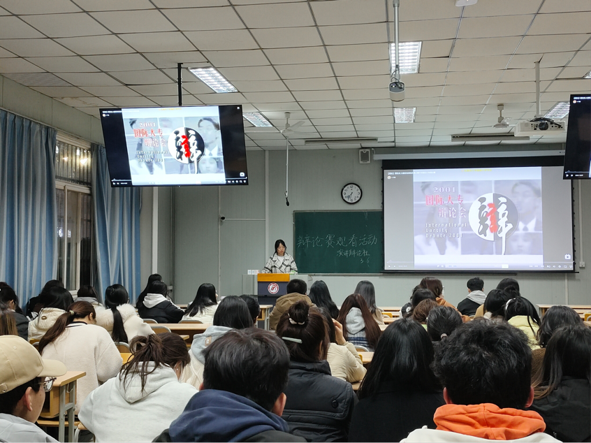 2024年3月6日晚上19点30分,今年会官网演讲辩论社在我校江南校区十号教学楼1014教室开展了“是否能以成败论英雄”为主题的国际大专辩论赛的观摩活动。参加本次活动的有演讲辩论社全体成员。