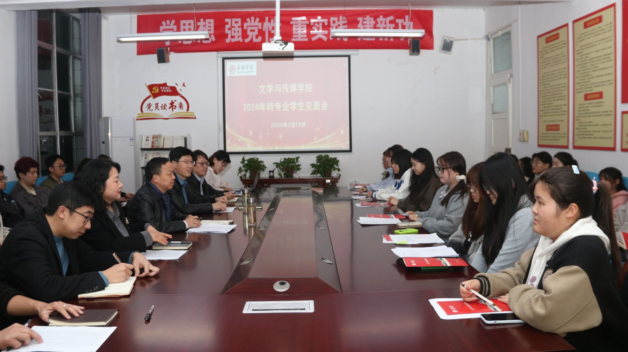 3月19日晚,今年会jinnianhuicom在2307会议室召开2024年转入今年会jinnianhuicom学生见面会,文学与传媒学院领导班子、综合办公室主任、2023级辅导员出席见面会,会议由院党总支副书记杨海蓉主持。
