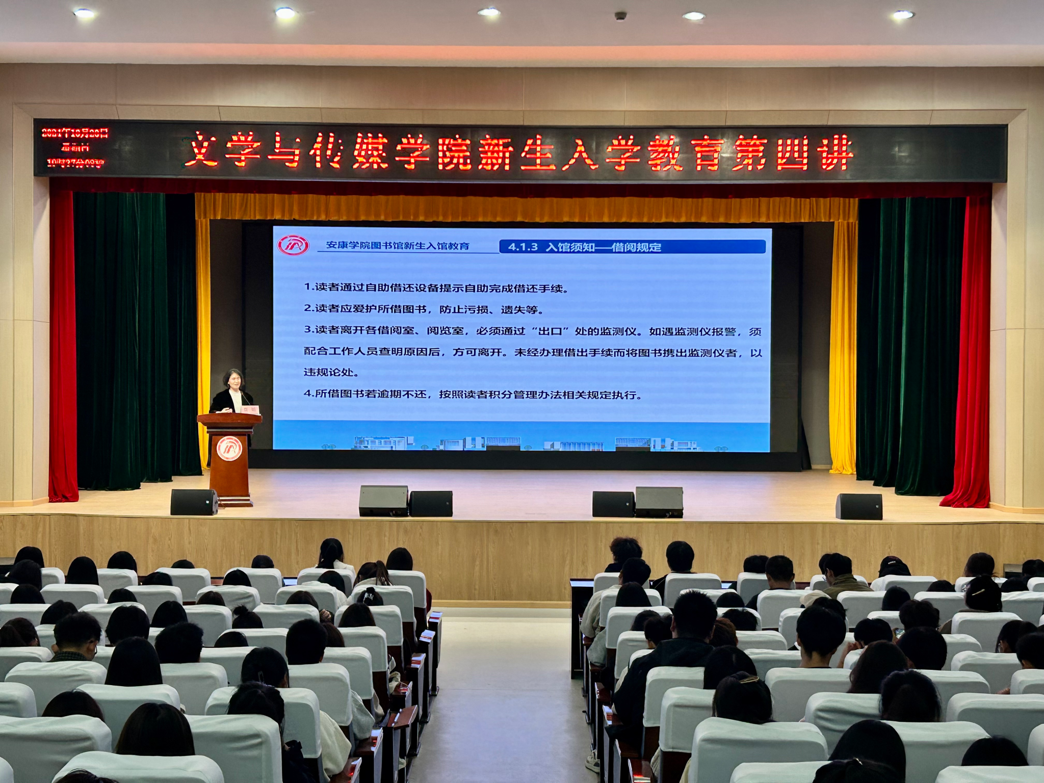 贾娟以“如何利用图书馆”为题展开讲座。为了让同学们能够有更好的借阅体验,她分别介绍了两个校区图书馆的馆藏资源概况和室内分布,强调了图书馆的开放时间,耐心讲解了图书查找、续借的方法和借阅期限的规定,叮嘱同学们合理安排时间入馆学习。贾娟在讲座中现场示范了关键词选择、识别索书号等电子资源检索技巧,帮助学生更加精准定位所需的文献资源。介绍了自助借还机的操作,提醒同学们轻松掌握借阅技巧,了解图书馆借阅逾期等行为处理规定,更便捷地享受图书借阅服务。