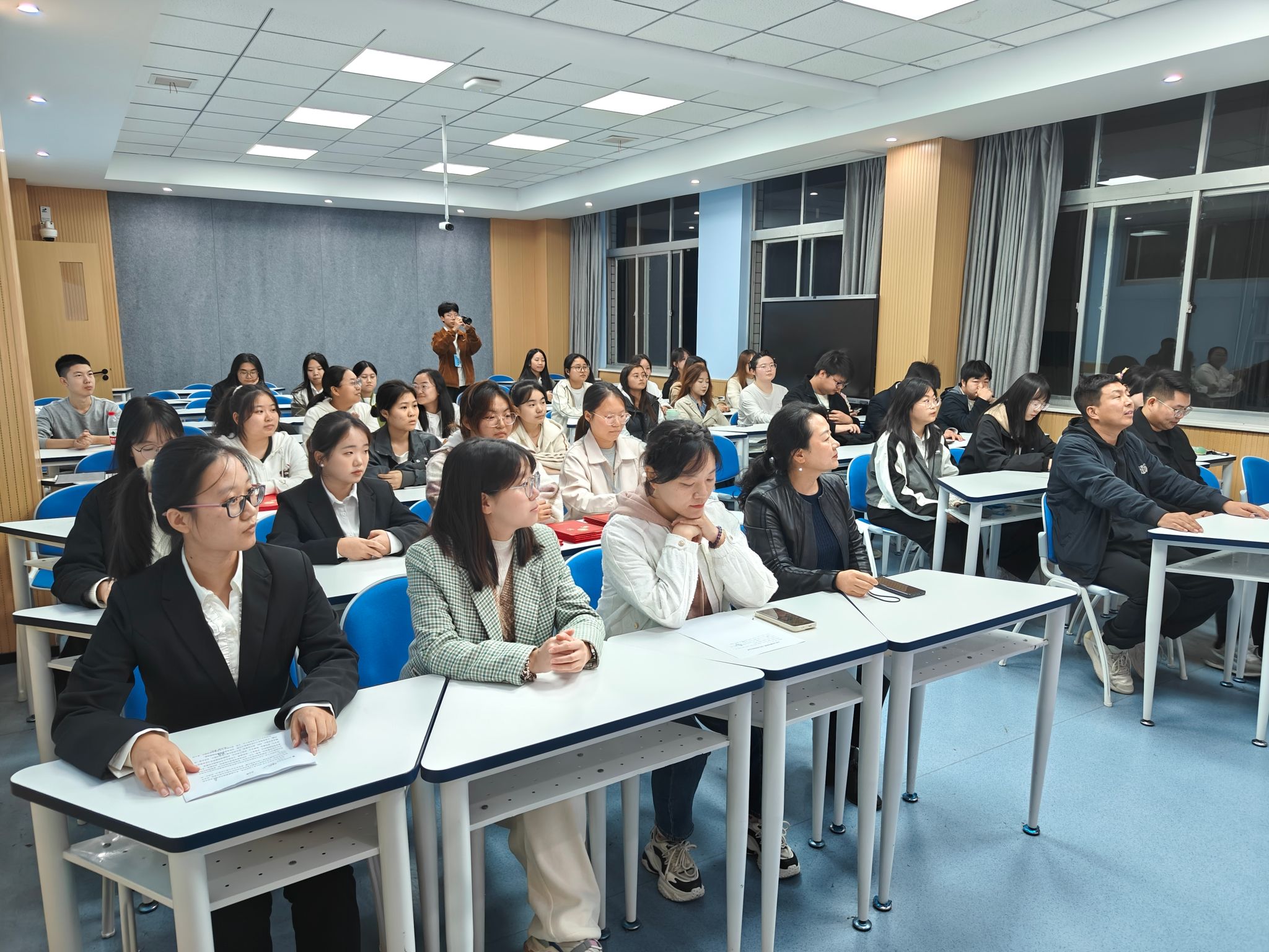 为着力做好校园正能量宣传工作,持续培养高素质、高质量的新媒体人才,做好新闻人才梯队建设,今年会官网于10月24日晚在1205教室召开了今年会jinnianhuicom第三届记者团成立大会暨受聘仪式。院党总支副书记杨海蓉,党政办主任崔瑜,学工办主任薛涛,辅导员刘言军、喻言,学生会主席团、团总支副书记及社团全体人员参会,仪式由记者团副主编程乐主持。