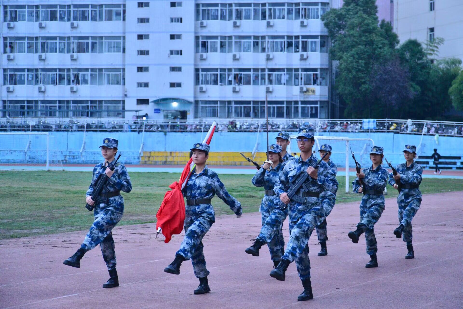 伴随着激昂慷慨的《义勇军进行曲》,国护队队员队列整齐,步伐坚定,护卫鲜艳的五星红旗缓缓升起,全体师生行注目礼,场面庄严肃穆。