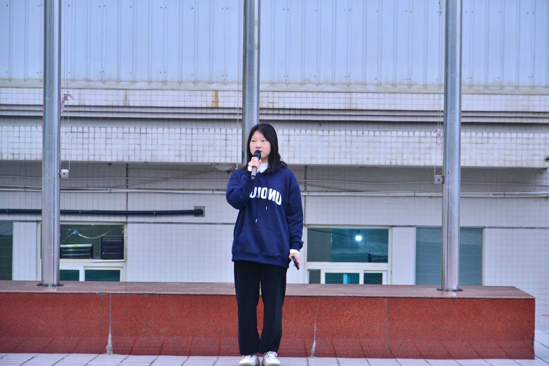 升旗仪式后,汉语言文学2024级4班张纯宁同学作国旗下演讲。她从学生自我修养的培养说起,倡导同学们树立良好的学习习惯,从小事做起,砺志笃行,追求卓越。