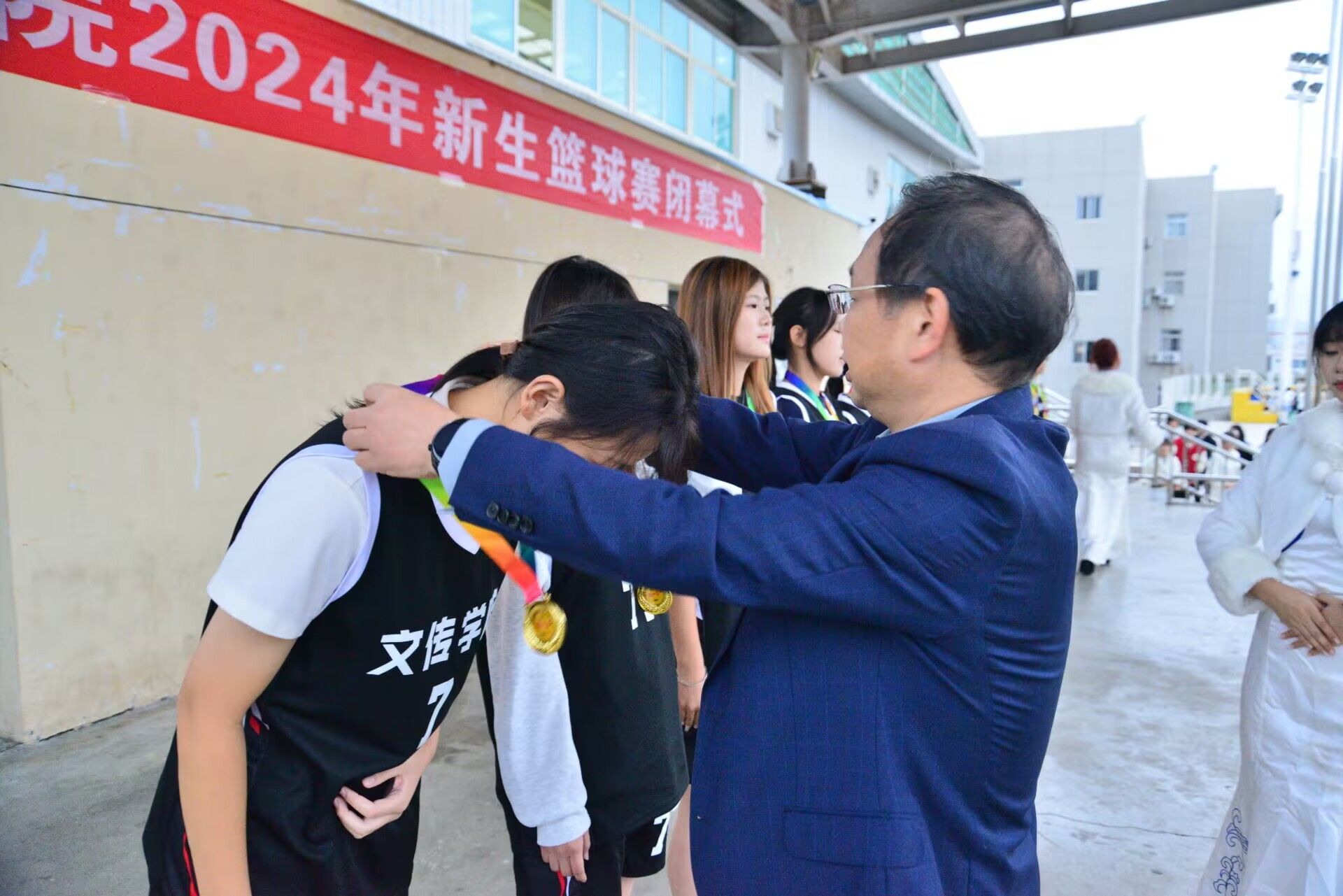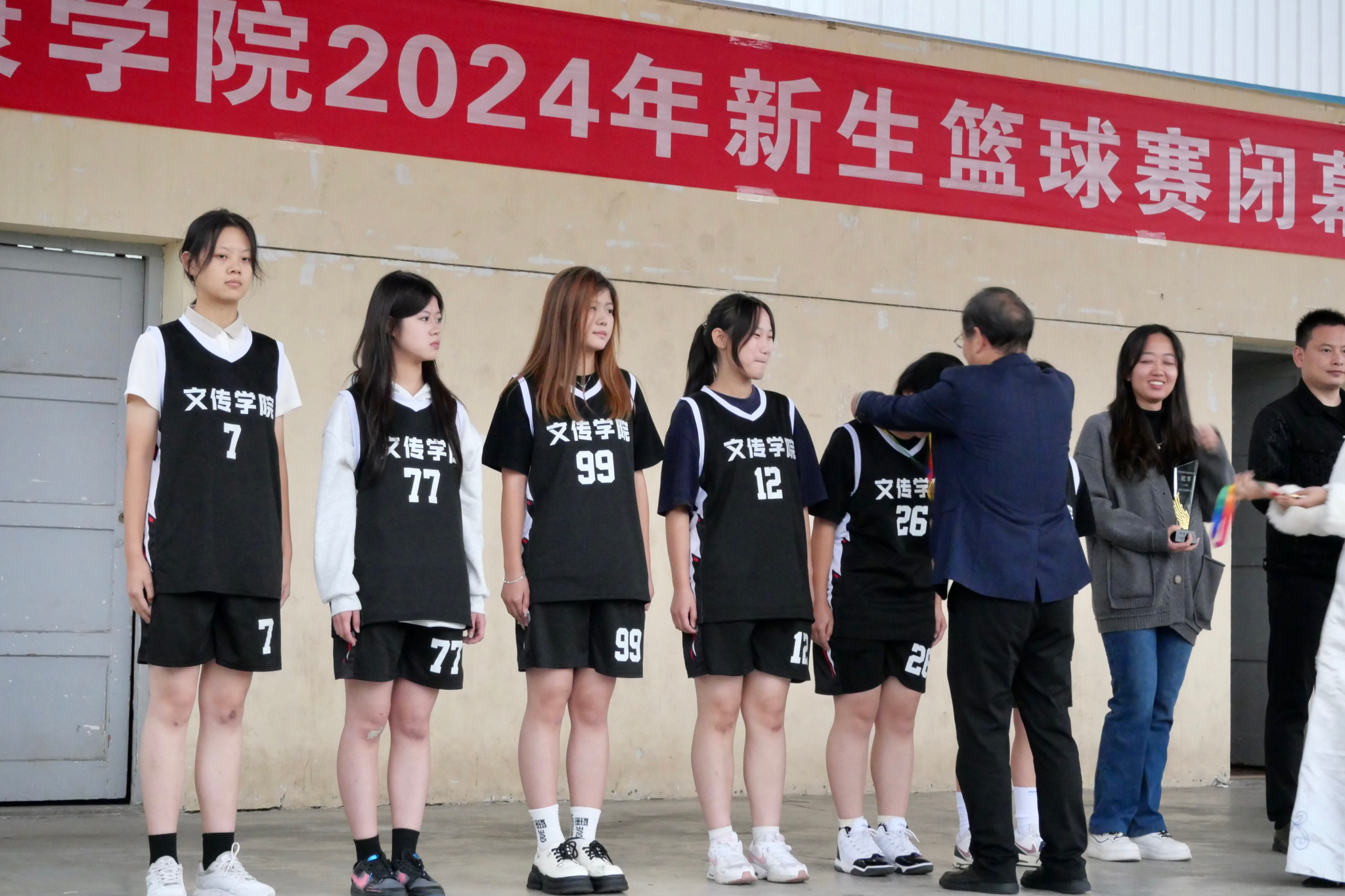 自赛事启动以来,今年会jinnianhuicom篮球队用汗水浇灌希望,用毅力铸就辉煌,在球场上展现出无与伦比的团队精神,默契的配合、精准的投篮、顽强的防守,每一个动作都凝聚着他们对梦想的追求和对篮球的热爱。经过多轮激烈角逐,今年会官网女子篮球队凭借出色的团队合作能力和精湛的球技,最终脱颖而出,夺得冠军。教务处处长汪义瑞为今年会官网代表队颁奖。