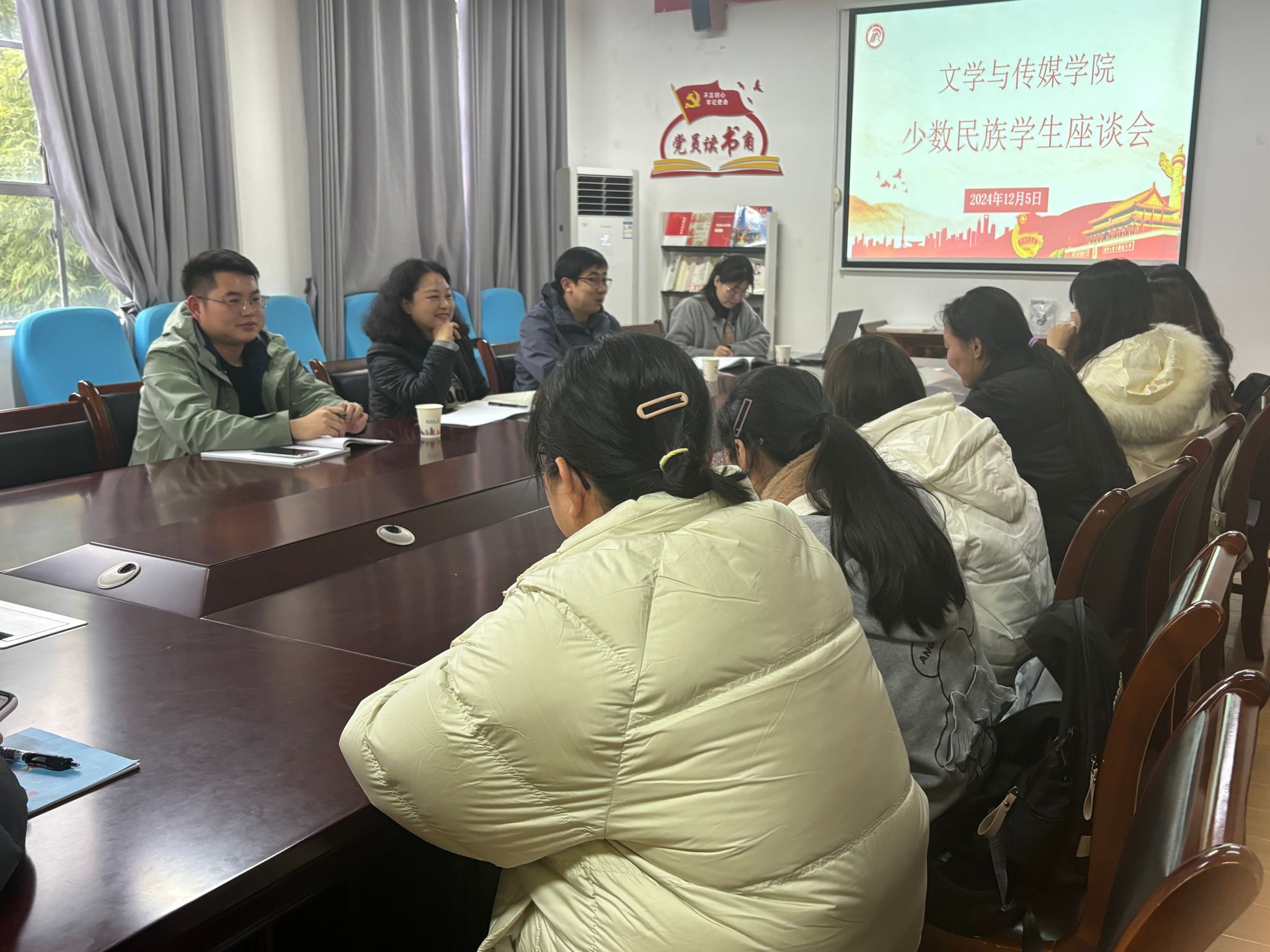 为进一步关心少数民族学生的在校生活,促进各民族学生交流融合,12月5日下午,今年会jinnianhuicom在2307会议室组织召开少数民族学生座谈会。学院党总支副书记杨海蓉、副院长曹刚、辅导员刘言军、喻言和20余名少数民族学生参会,喻言主持。