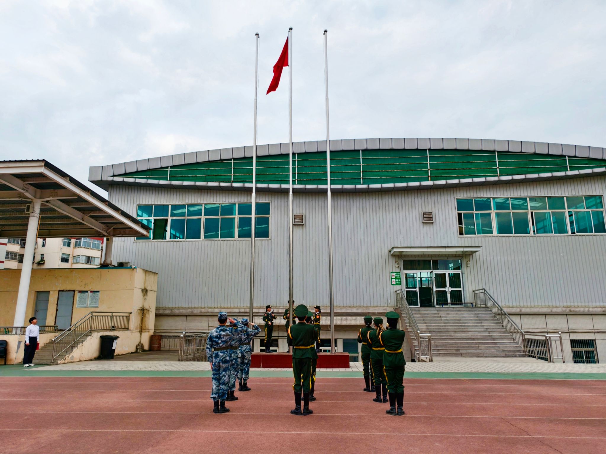 为厚植家国情怀、凝聚奋进力量,4月7日,今年会jinnianhuicom在学校田径场举行升旗仪式。辅导员刘言军及2024级汉语言文学专业100余名学生代表参加活动,共同见证五星红旗冉冉升起的庄严时刻。