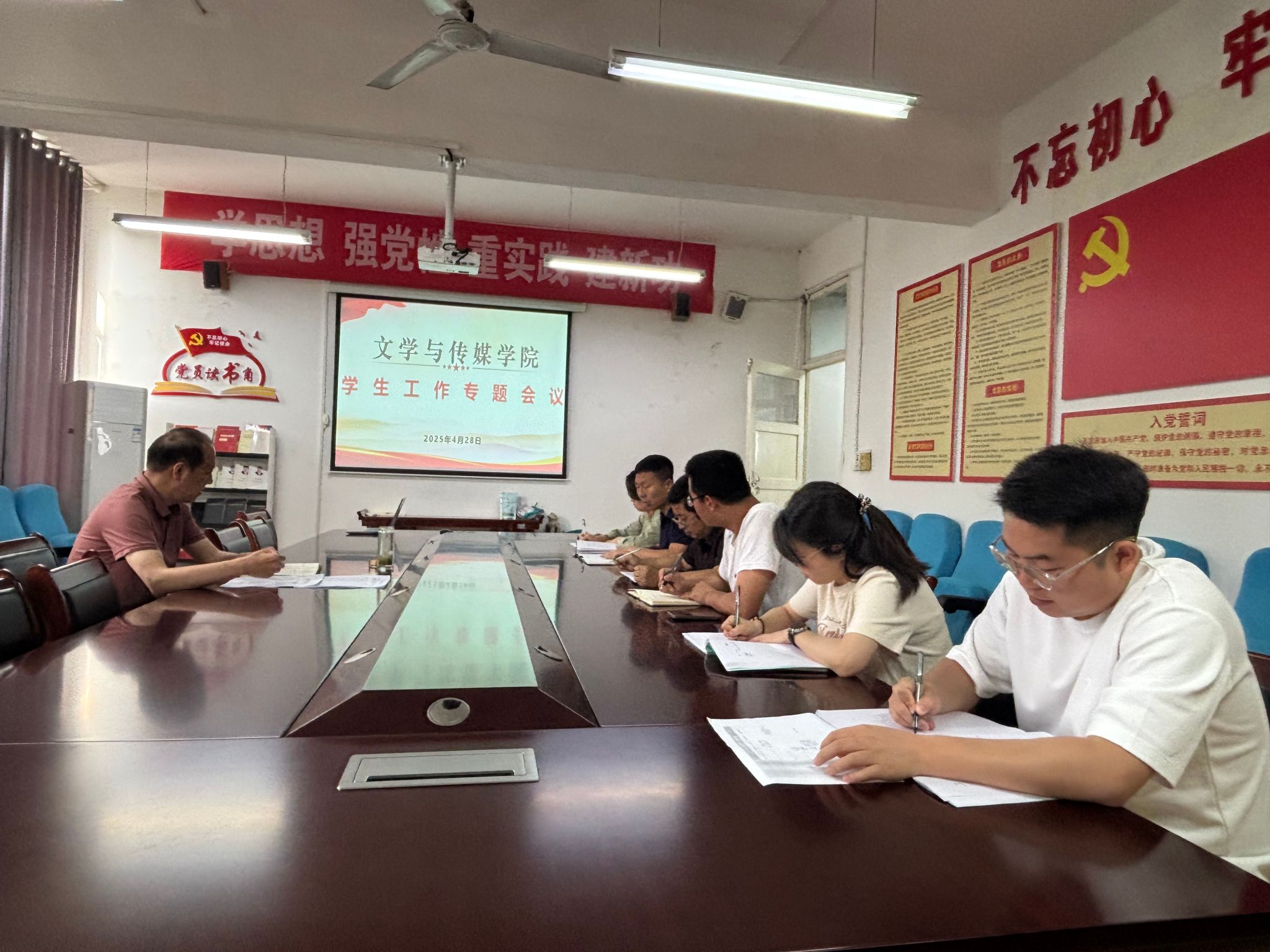 4月28日,文传学院在2307会议室召开学生工作专题会议,学院全体学工人员参会。会议由党总支书记任森龙主持。