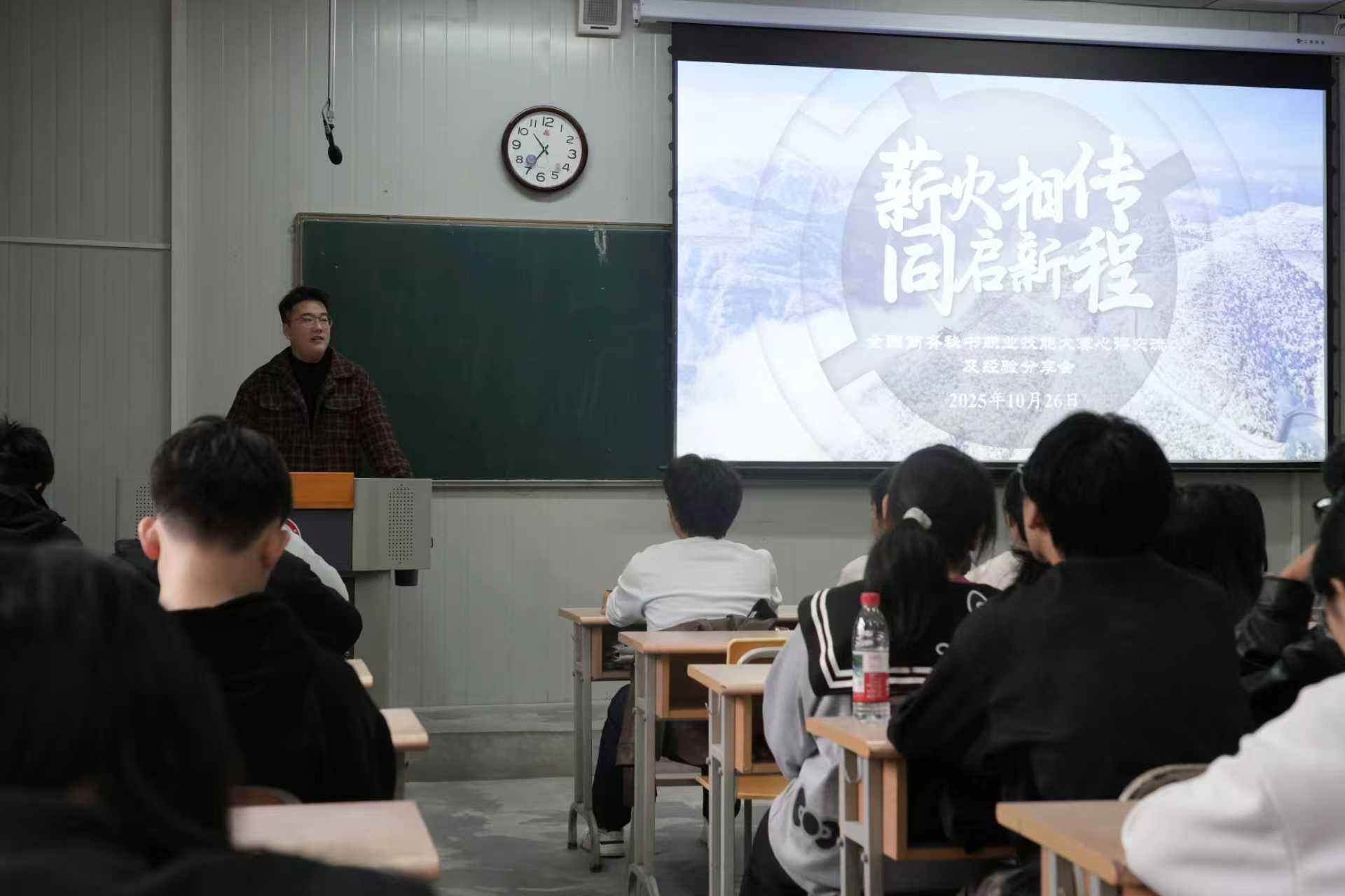 分享会上,第十四届全国商务秘书大赛获奖学生郑竣文、田荣川、王希鸣、余洁四位同学依次做经验交流。郑竣文对大赛竞赛细则与评分标准进行专业解读,帮助学生了解赛事对专业能力的核心要求;田荣川结合参赛实战,强调了秘书人员必备的专业素养、心理素质与职业形象的协同提升;王希鸣从团队协作角度,讲述了如何在集体中实现个人专业价值;余洁从宏观角度,分享了备赛过程中的关键环节与成长收获,展现了赛事对职业能力的全面提升。