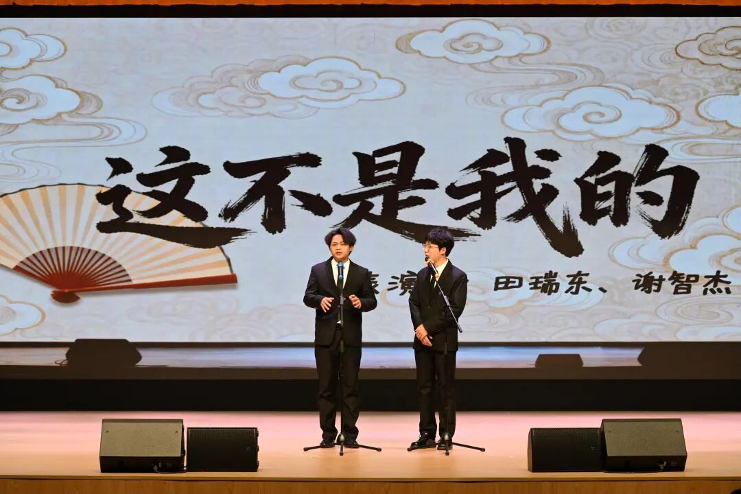 晚会节目形式多样、精彩纷呈。歌曲演绎情感真挚,将青春心绪娓娓道来;舞蹈表演风格多元,古典雅致的民族舞与动感十足的现代街舞轮番登场,柔美身段与力量迸发的碰撞惊艳全场;语言类节目聚焦校园生活,小品和相声用诙谐台词复刻成长趣事,引得现场笑声、掌声此起彼伏;武术等传统体育表演尽显刚柔并济之美,展现出中华文化的深厚底蕴与同学们昂扬向上的精神风貌。