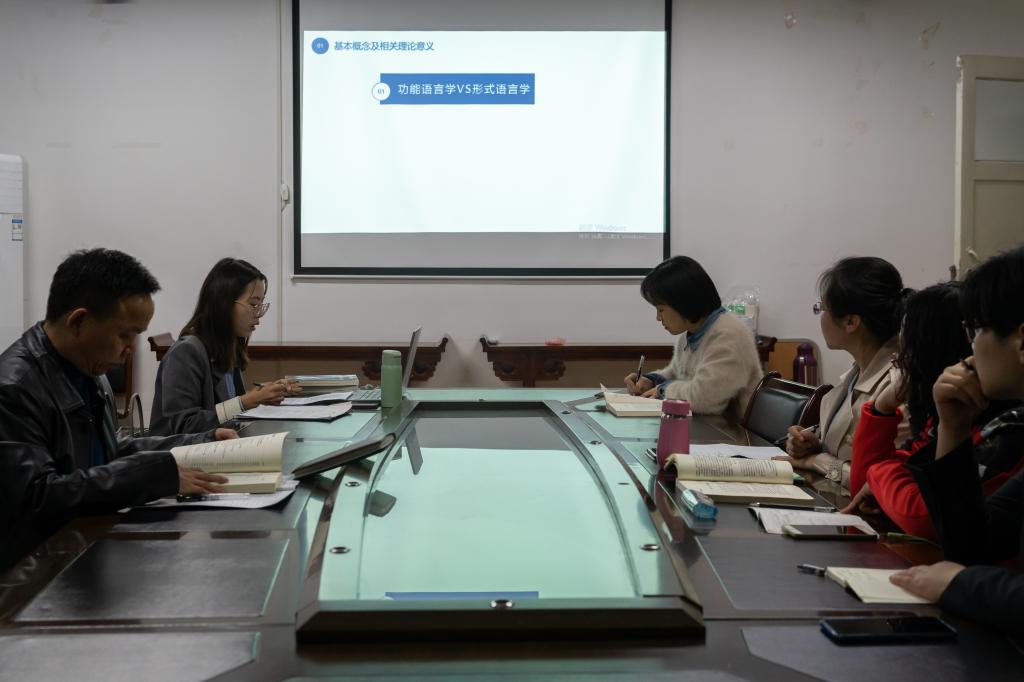 盘珊君老师作为主讲人,从“功能语言学的发展与基本理念”“系统功能语法的内涵”“系统功能语法中人际意义研究的价值”三个方面做了题为“系统功能语法的理论探索”的学术报告。报告首先说明了功能语言学的观点和方法论,阐述了系统功能语法的三个元功能——概念功能 (ideational function)、人际功能 (interpersonal functions)、语篇功能 (textual function)的深层次内涵及研究意义。报告最后指出,人际意义功能作为系统功能语言学的重要组成部分之一,可以为我们分析不同类型的语篇或会话提供理论依据,具有一定的学术研究价值。