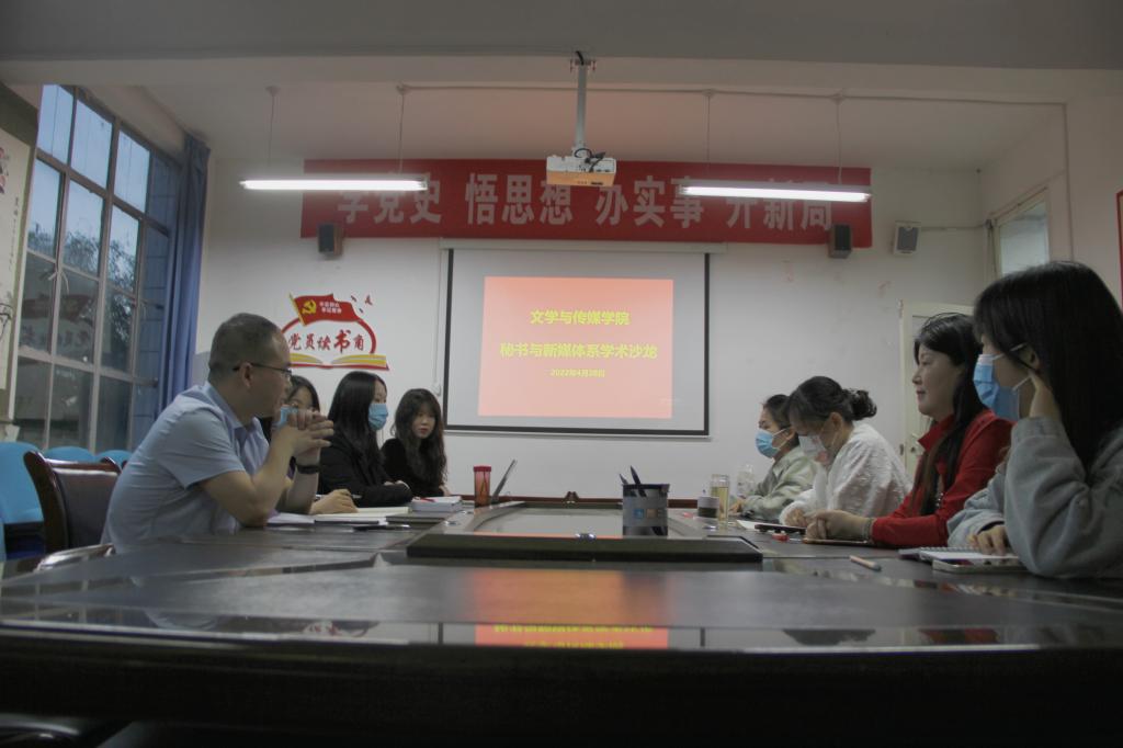 为促进教师间的交流与合作,进一步提升科学研究的能力与水平,4月28日19:30,秘书与新媒体学科组在2307会议室举办了文传学院第五届第四场学术沙龙活动。本次学术沙龙由青年教师罗相如主讲,题目为“安康新闻史的现状与可拓展空间”。沙龙活动由秘书与新媒体系主任谭诗民主持,秘书与新媒体学科组全体教师参与了该活动。