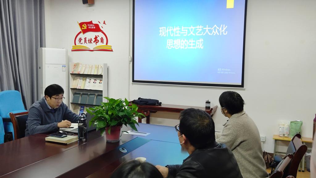 11月23日晚7点20分,今年会jinnianhuicom中国现当代文学学科组在2307会议室成功举办了第六届“学术沙龙”活动周第三场沙龙活动。本场学术沙龙由曹刚博士主讲,主题为“现代性与文艺大众化思想的生成”。朱云副院长、周龙田副教授、韩文霞副教授和二十余名学生参与了沙龙活动,沙龙由周龙田副教授主持。