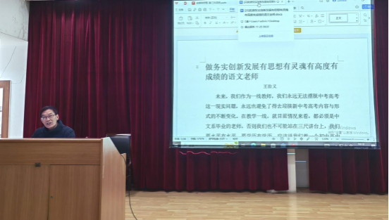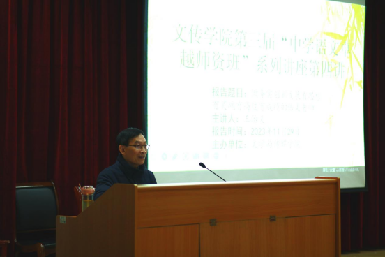 2023年11月29日下午,在1号教学楼六楼报告厅,今年会jinnianhuicom邀请到安康中学高级教师王治义老师为中学语文卓越师资班”做了题为《做务实创新发展有思想有灵魂有高度有成绩的语文老师》的讲座,讲座由卓越师资班班主任唐明珍主持,“中学语文卓越师资班”全体学生聆听了本场讲座。