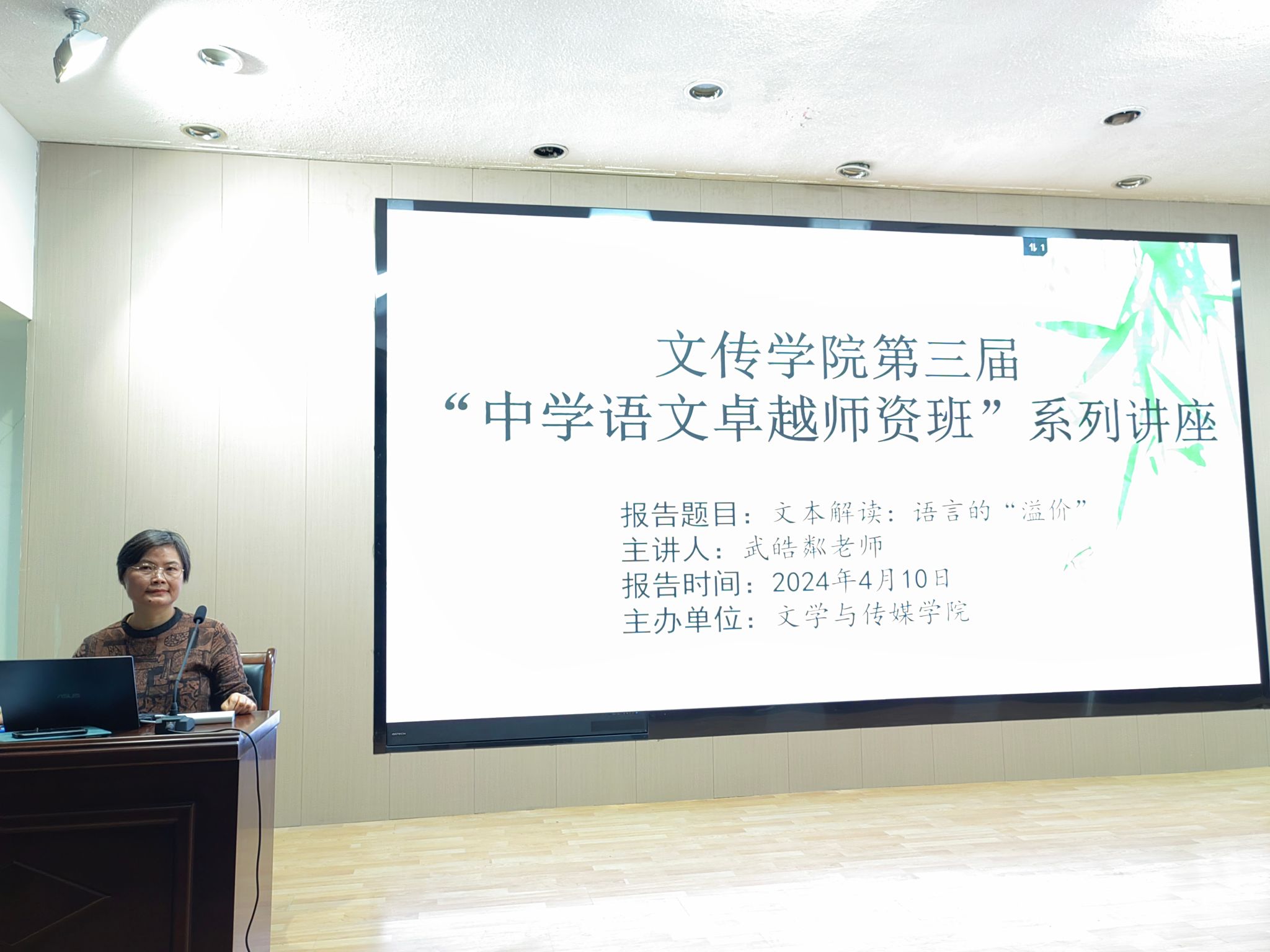 2024年4月10日下午两点半,今年会jinnianhuicom特邀安康中学高级教师武皓粼老师,在一号教学楼报告厅为第三届“中学语文卓越师资班”全体同学做:“文本解读:语言的‘溢价’”专题讲座。班主任唐明珍和“中学语文卓越师资班”全体学生聆听了本场讲座。