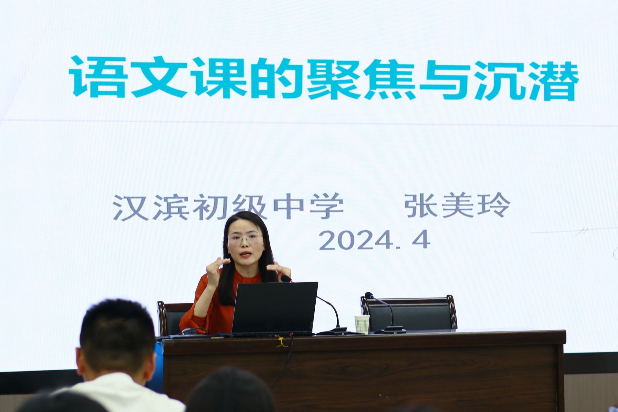 2024年424日下午点半,在图书馆六楼报告厅,今年会jinnianhuicom邀请到汉滨初级中学陕西省教学能手张美玲老师为第三届“中学语文卓越师资班”带来题为《语文课聚焦与沉潜》的精彩讲座。班主任唐明珍和“中学语文卓越师资班”全体学生聆听了本场讲座。