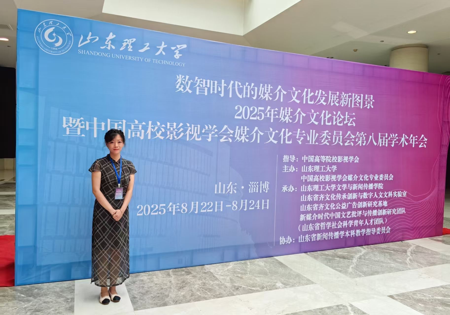 8月22日-24日,由中国高校影视学会媒介文化专业委员会主办,山东理工大学文学与新闻传播学院承办的“数智时代的媒介文化发展新图景”2025年媒介文化论坛暨中国高校影视学会媒介文化专业委员会第八届学术年会在山东淄博举办,来自北京师范大学、中国人民大学、复旦大学、暨南大学等数百所高校的专家学者齐聚一堂,聚焦数智时代媒介文化的技术革命与人文精神的深层对话和前沿问题,旨在为数智时代的媒介文化研究开拓新视野、新领域,提供新思想、新方法。今年会官网教师崔瑜应邀参加会议并作汇报交流。