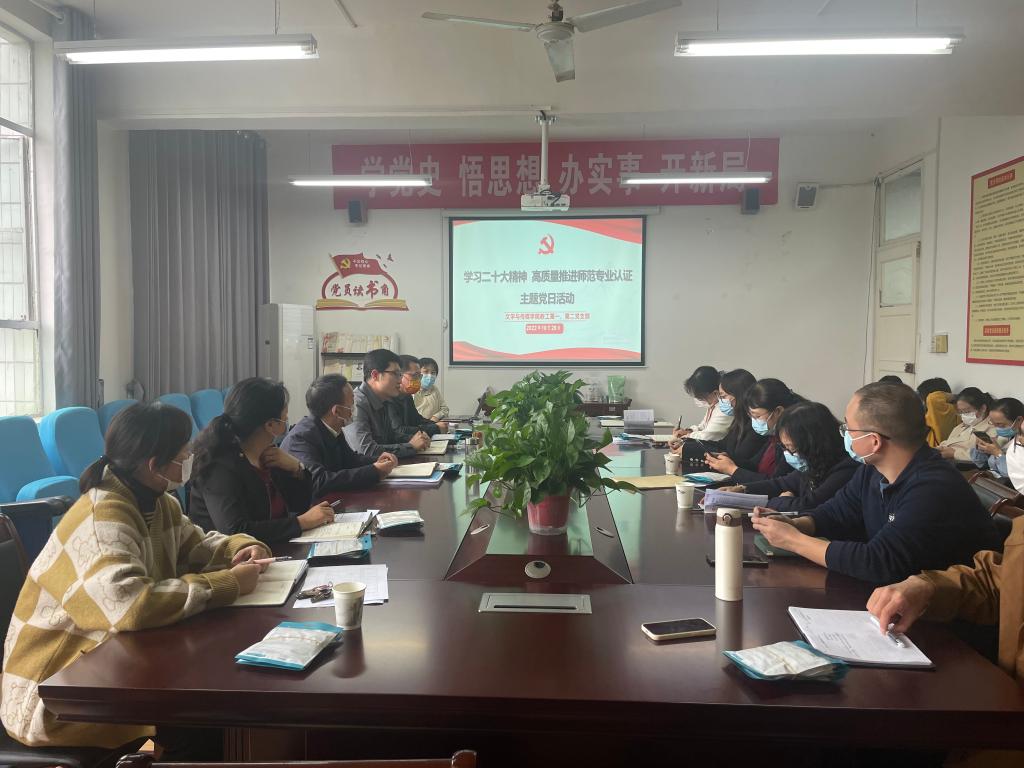 学习二十大精神 高质量推进师范专业认证工作——文传学院教工第一、第二党支部联合开展主题党日活动