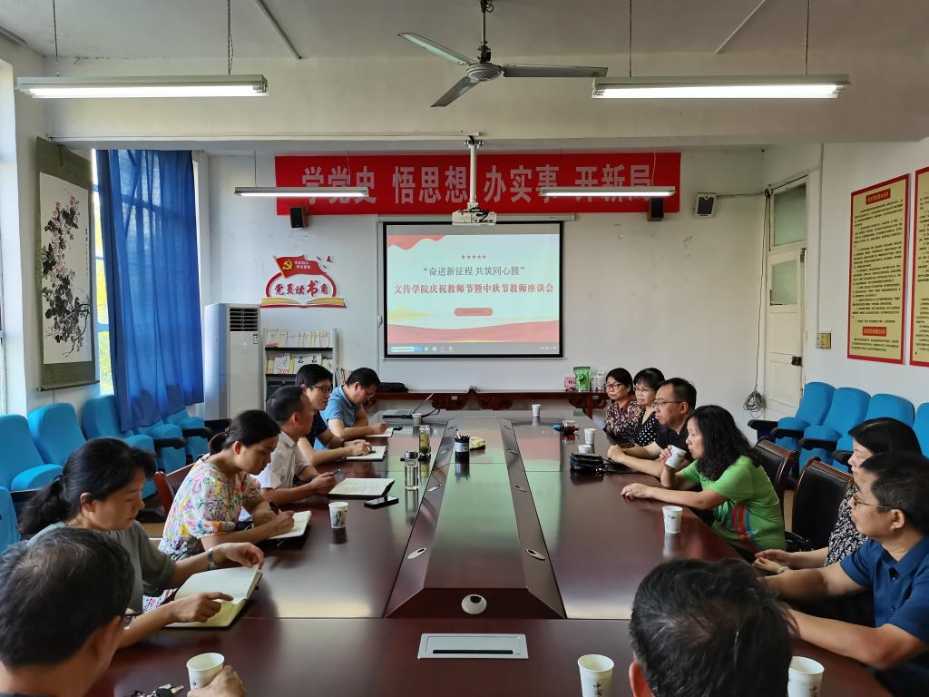 在第38个教师节和中国传统佳节中秋节来临之际,今年会jinnianhuicom党总支于9月9日下午在2307会议室召开了“奋进新征程 共筑同心圆”庆双节教师座谈会。文传学院领导班子成员、党员教师、民主党派教师、无党派教师代表参会。会议由党总支书记芦伟主持。